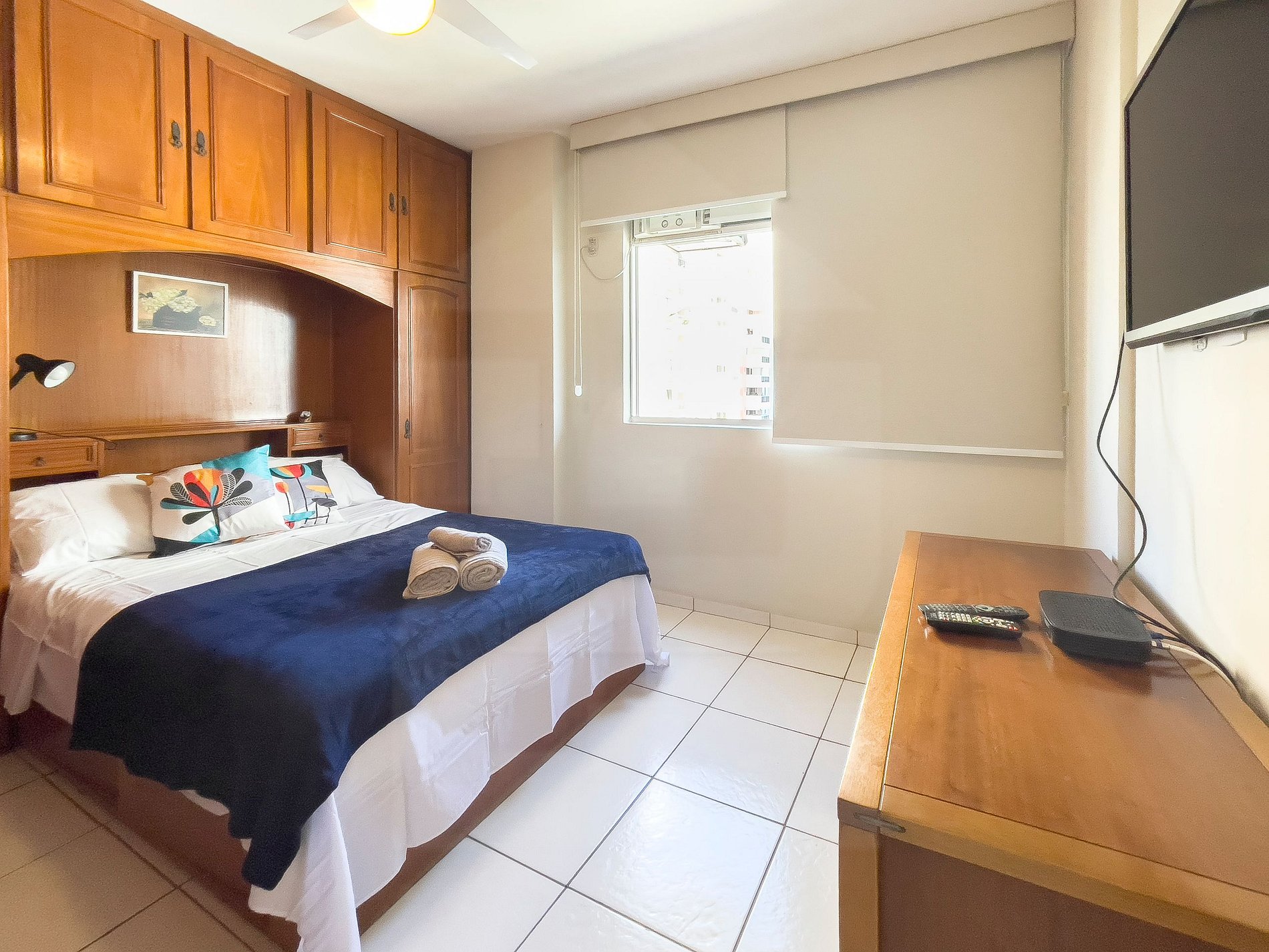 Suíte 1 - Cama de casal, armários, ar-condicionado.