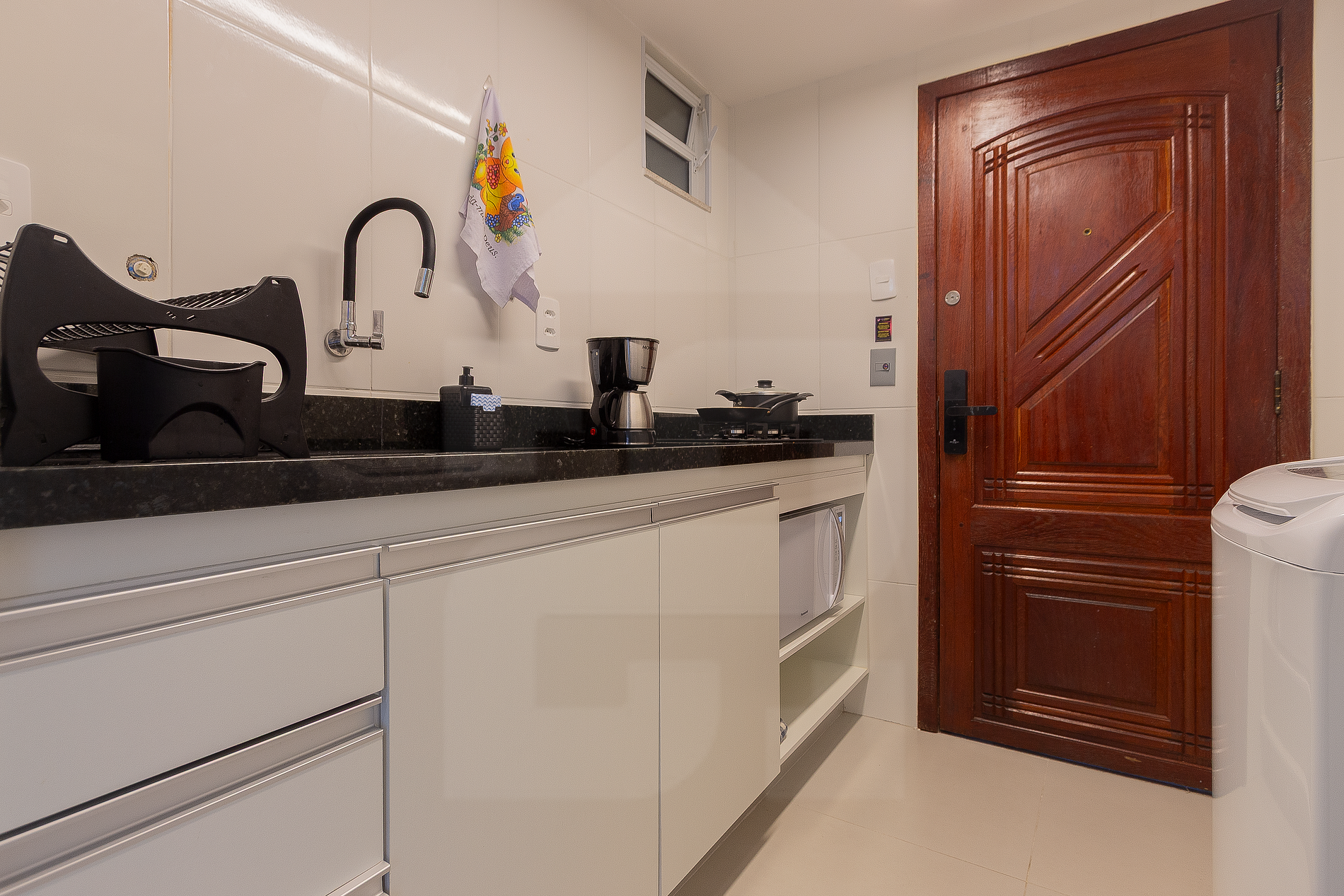 O apartamento é de fundos, garantindo uma estadia muito mais silenciosa, mesmo em uma das áreas mais centrais de Copacabana, além de uma bela vista para o Cristo Redentor.