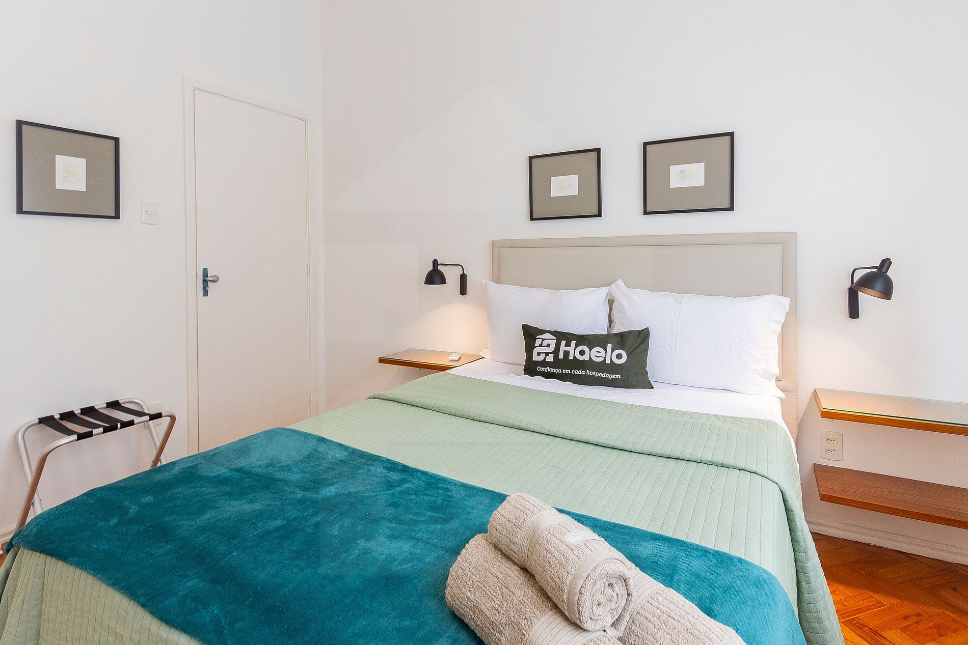 Apartamento amplo e confortável a poucos minutos da Praia de Copacabana. São 2 quartos: um casal e outro na área de serviço, muito confortável, com ar-condicionado.