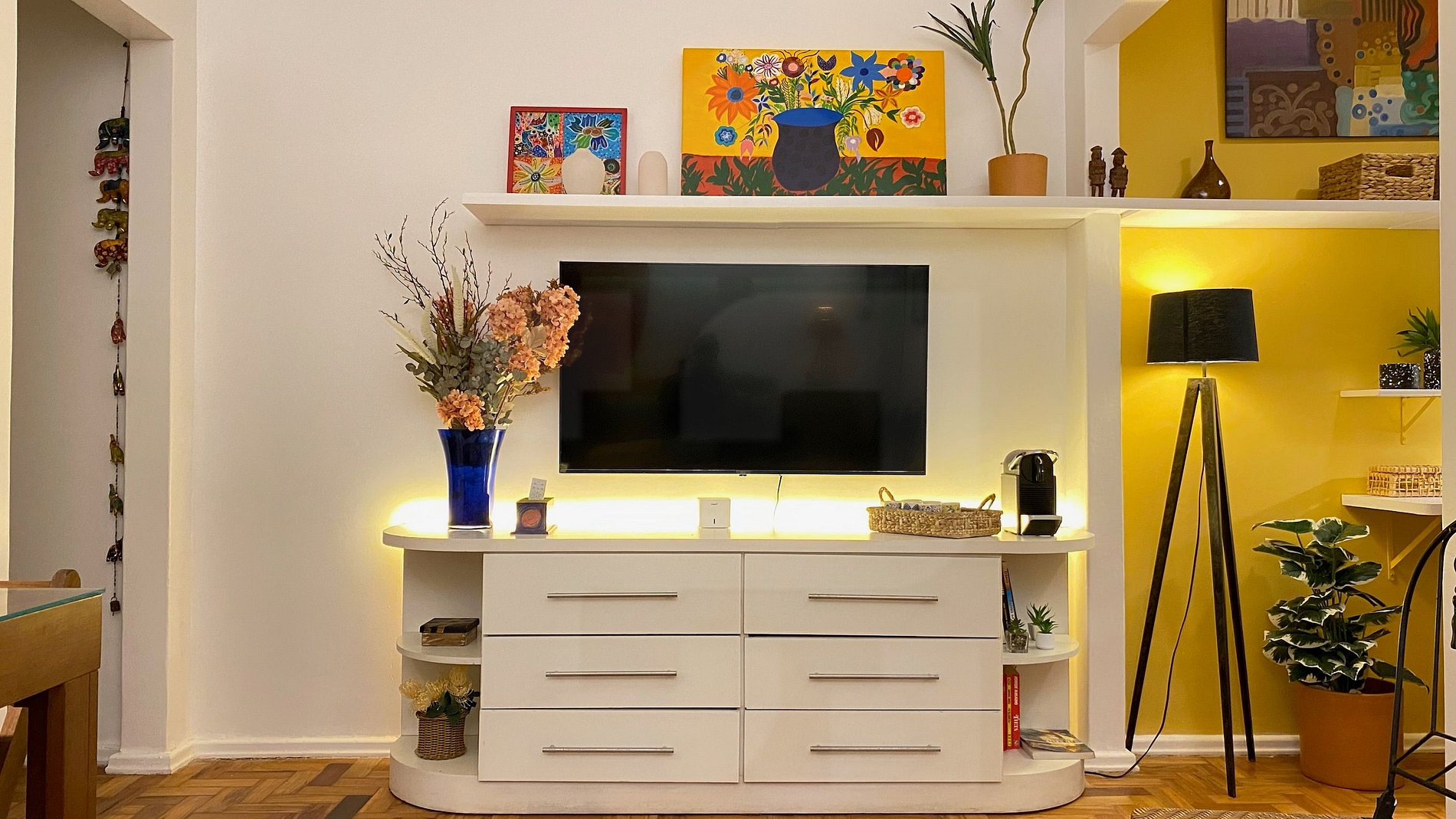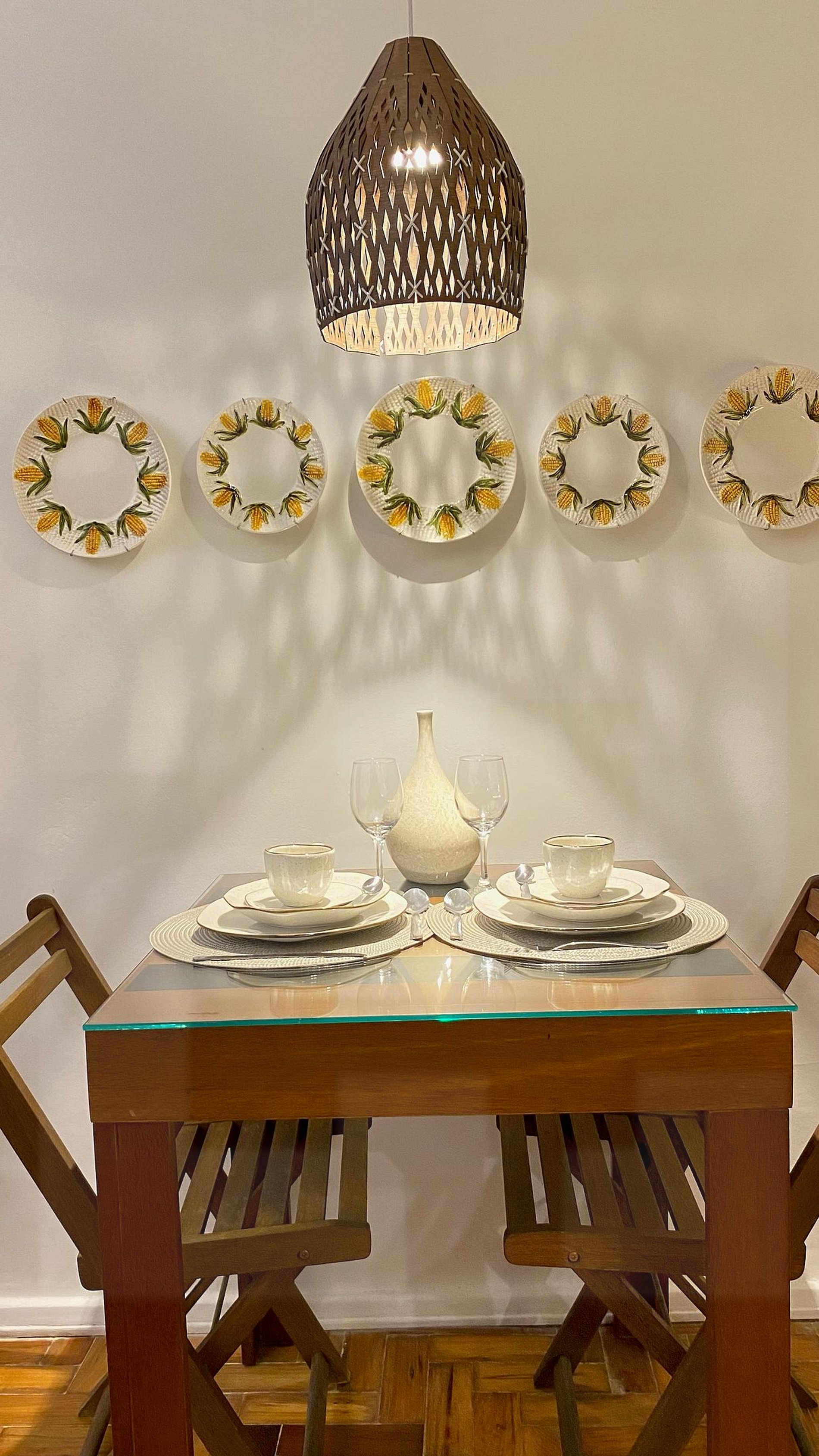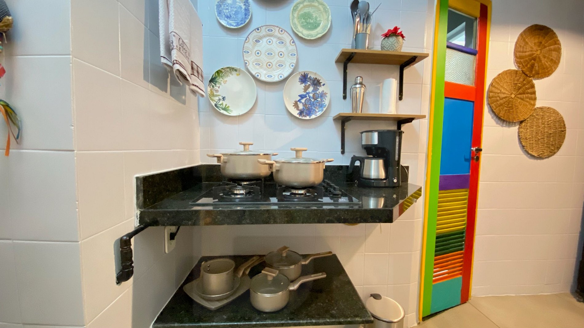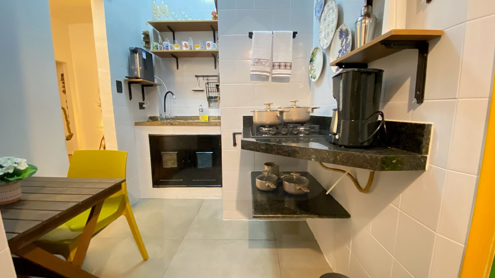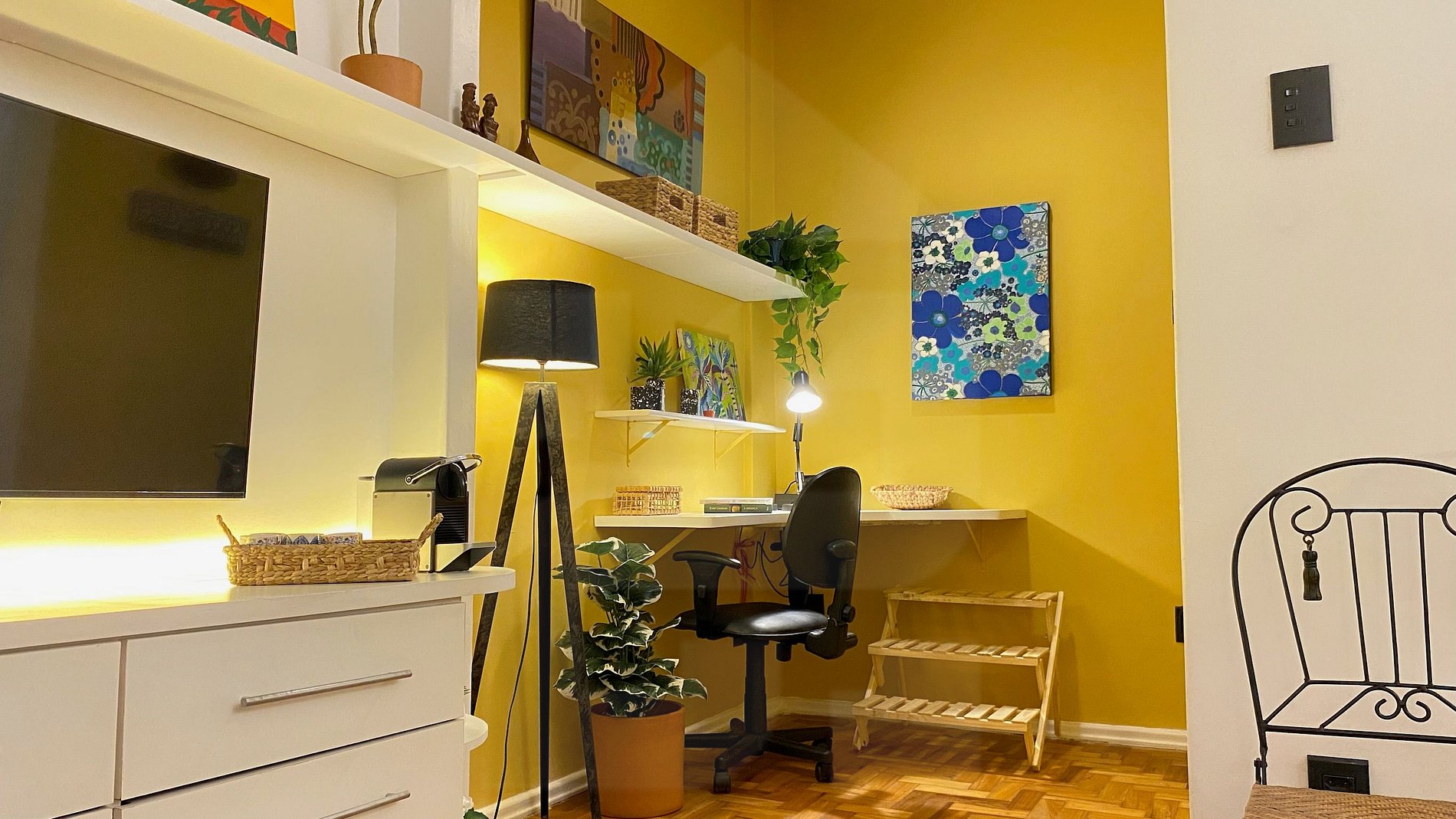 A decoração é um diferencial à parte: cores alegres, plantas decorativas e detalhes pensados para criar um ambiente acolhedor, leve e agradável — perfeito para quem quer se sentir em casa no Rio.