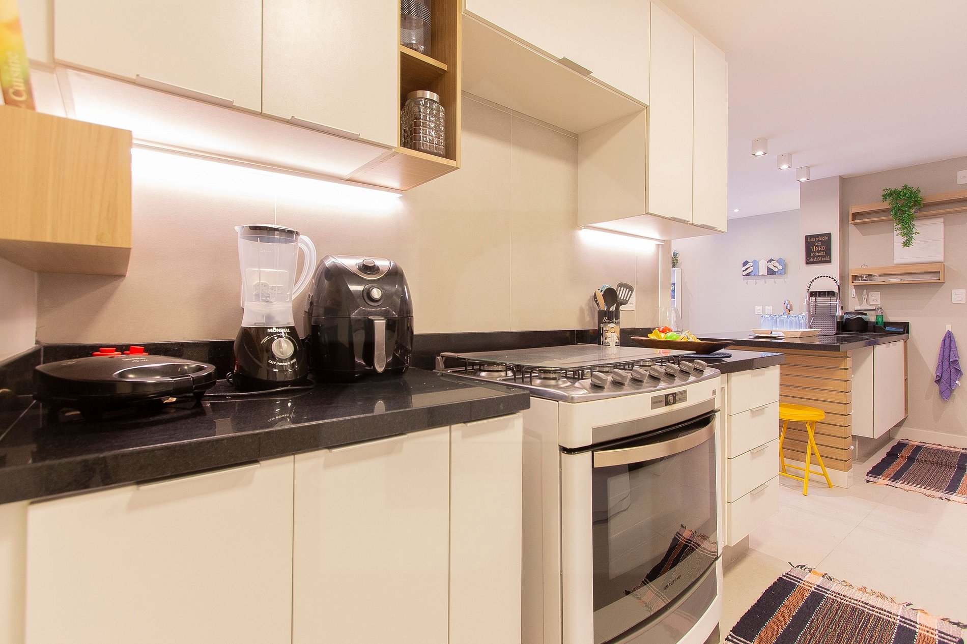 2 quartos, sendo 1 suíte. Cozinha totalmente equipada.