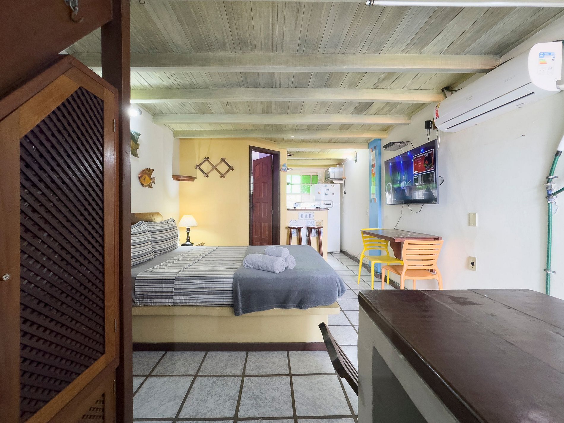 Sala - Cama de casal, guarda-roupa, Ar condicionado,