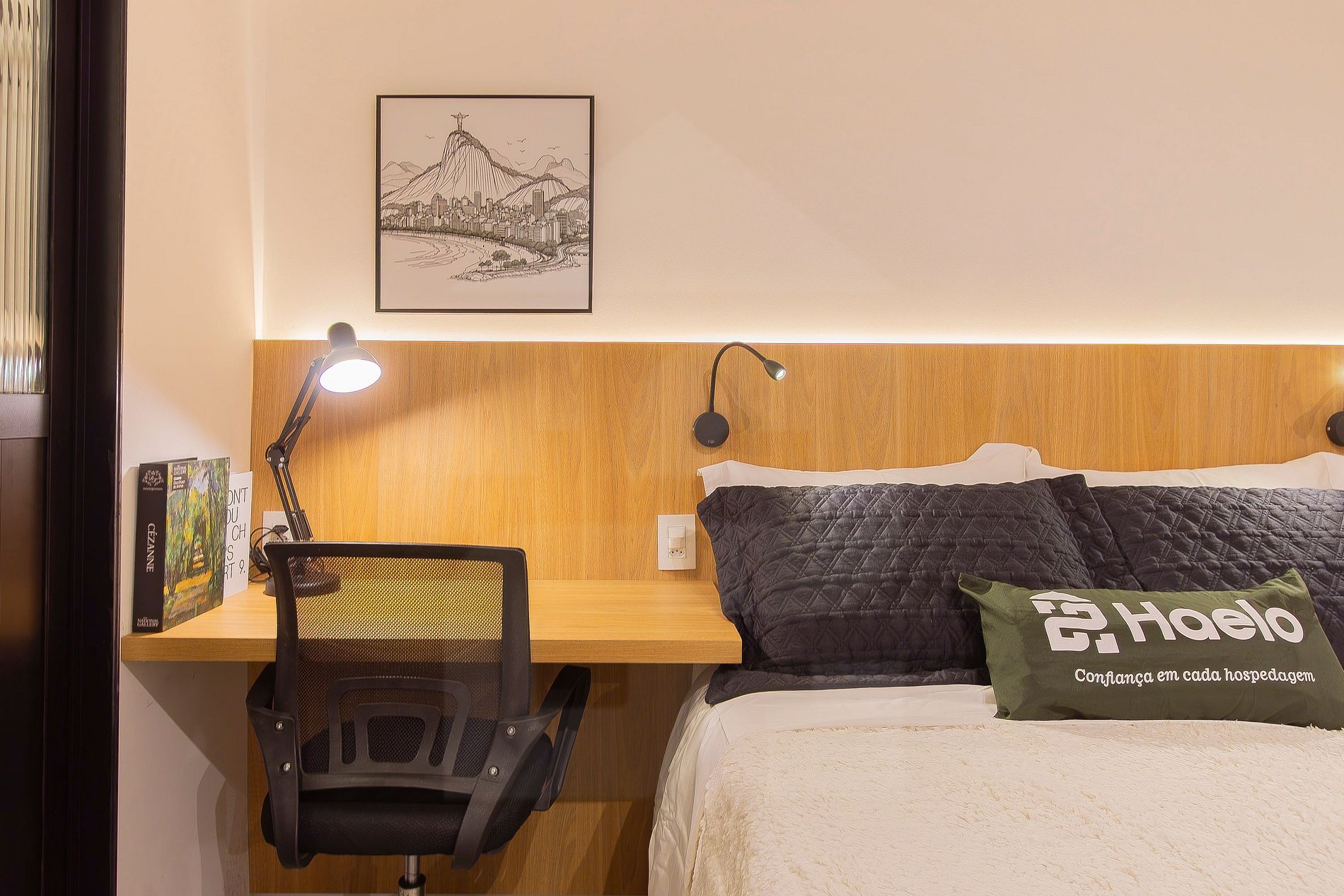 Home Office: Ao lado da cama, ideal para quem precisa trabalhar.