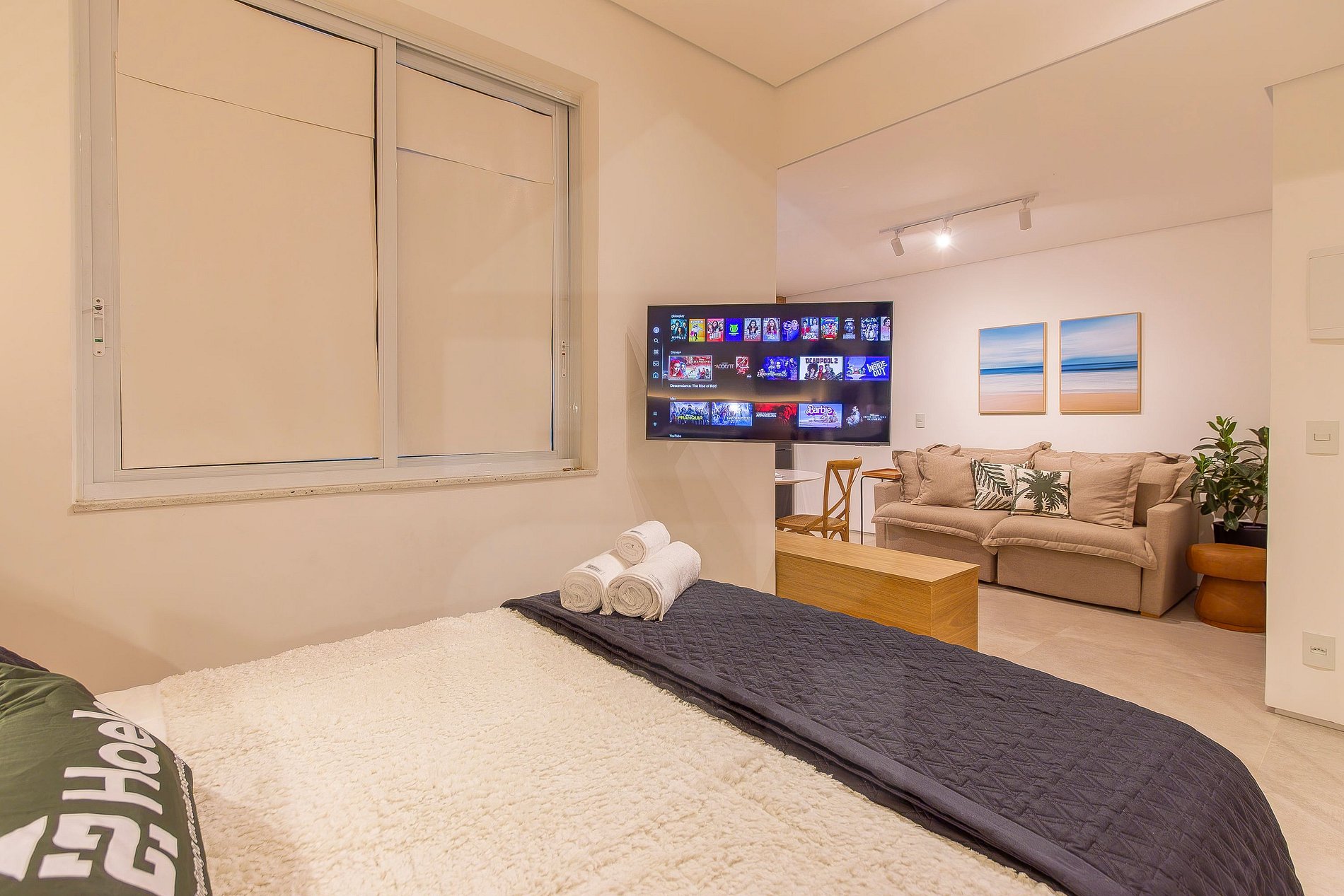 O estúdio é bem dividido para garantir conforto e funcionalidade em cada ambiente: