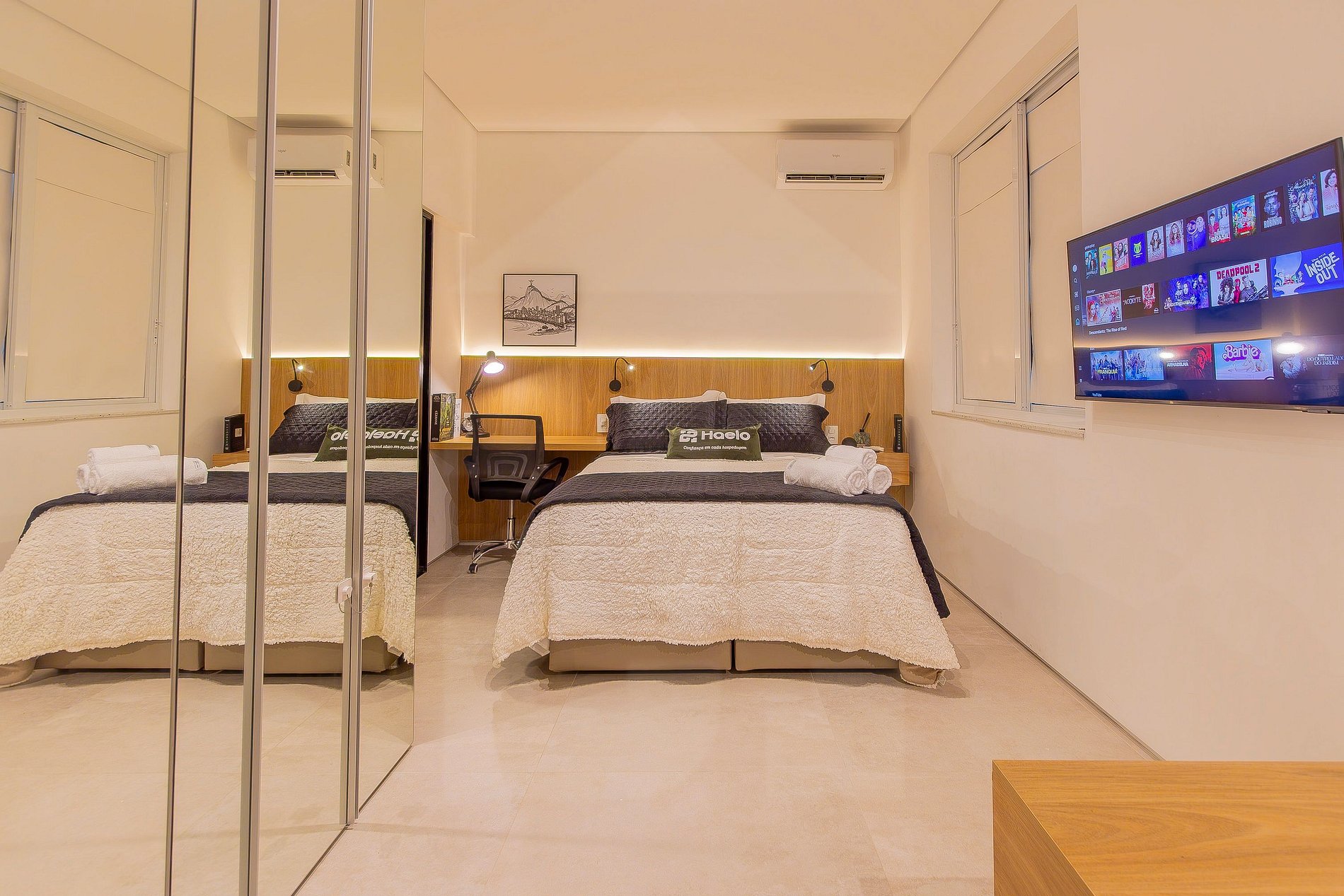 Home Office: Ao lado da cama, ideal para quem precisa trabalhar.