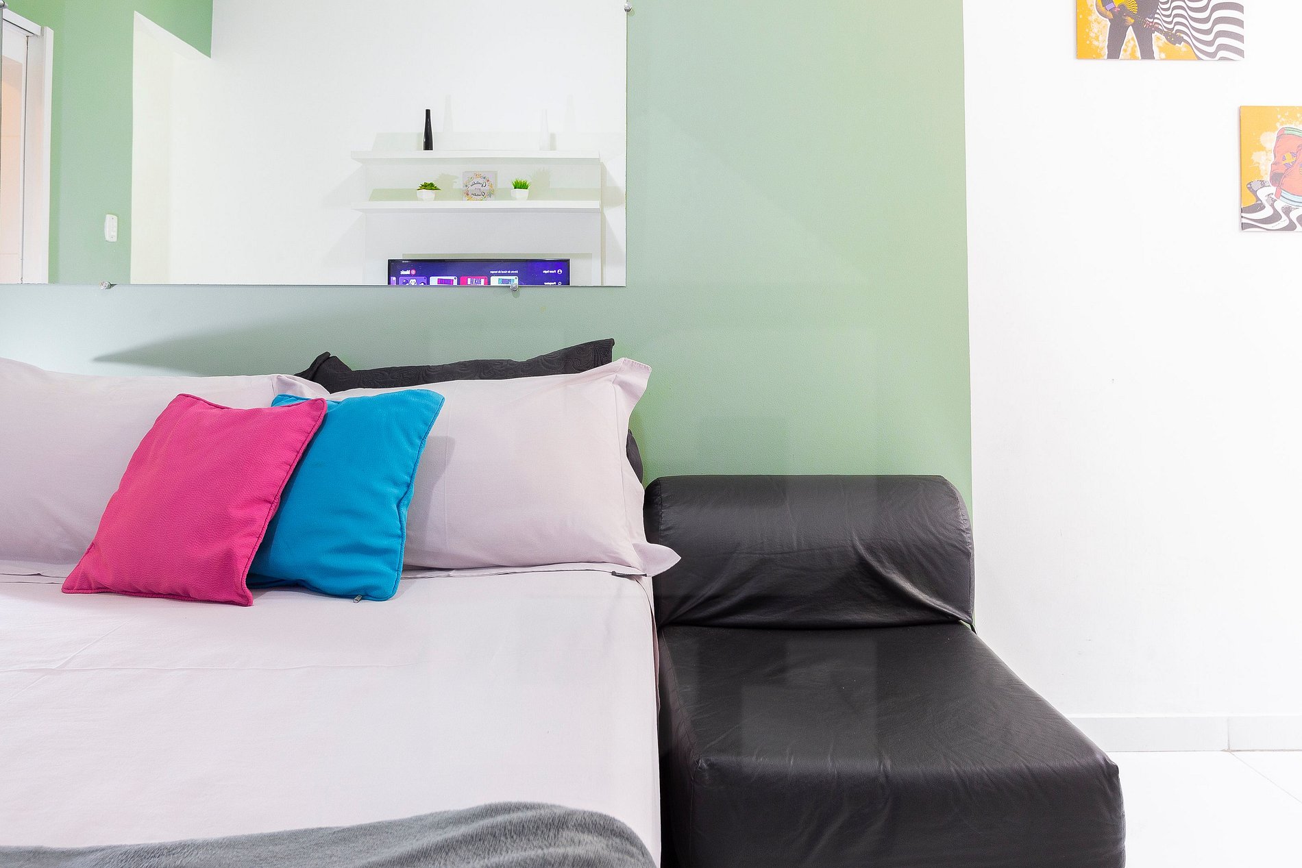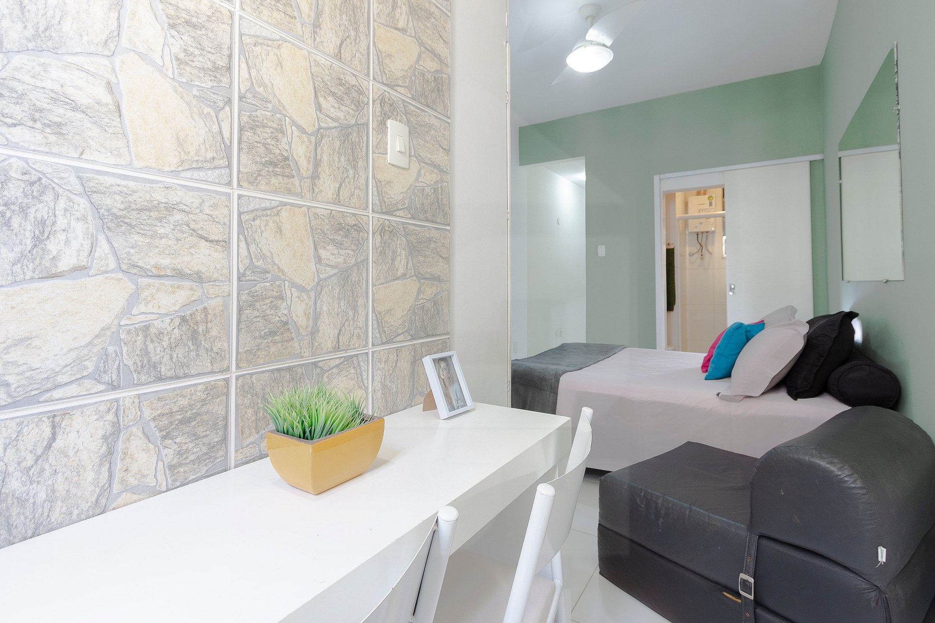 Aconchegante estúdio próximo à praia de Copacabana. Portaria e vigilância 24 horas, acomoda até 2 pessoas.