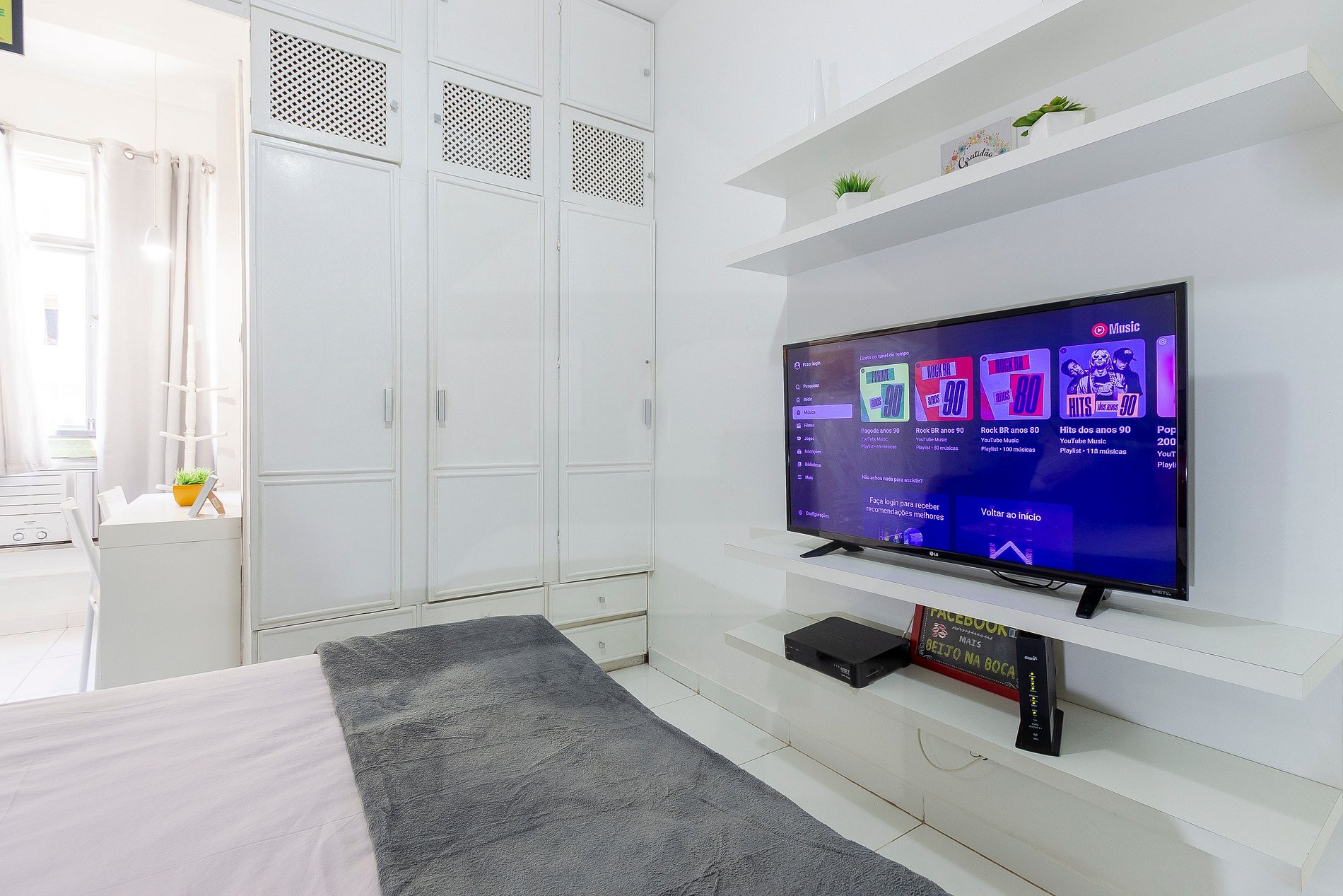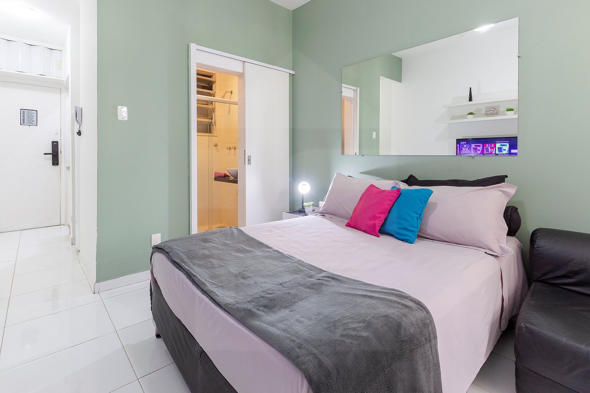 Aconchegante estúdio próximo à praia de Copacabana. Portaria e vigilância 24 horas, acomoda até 2 pessoas.