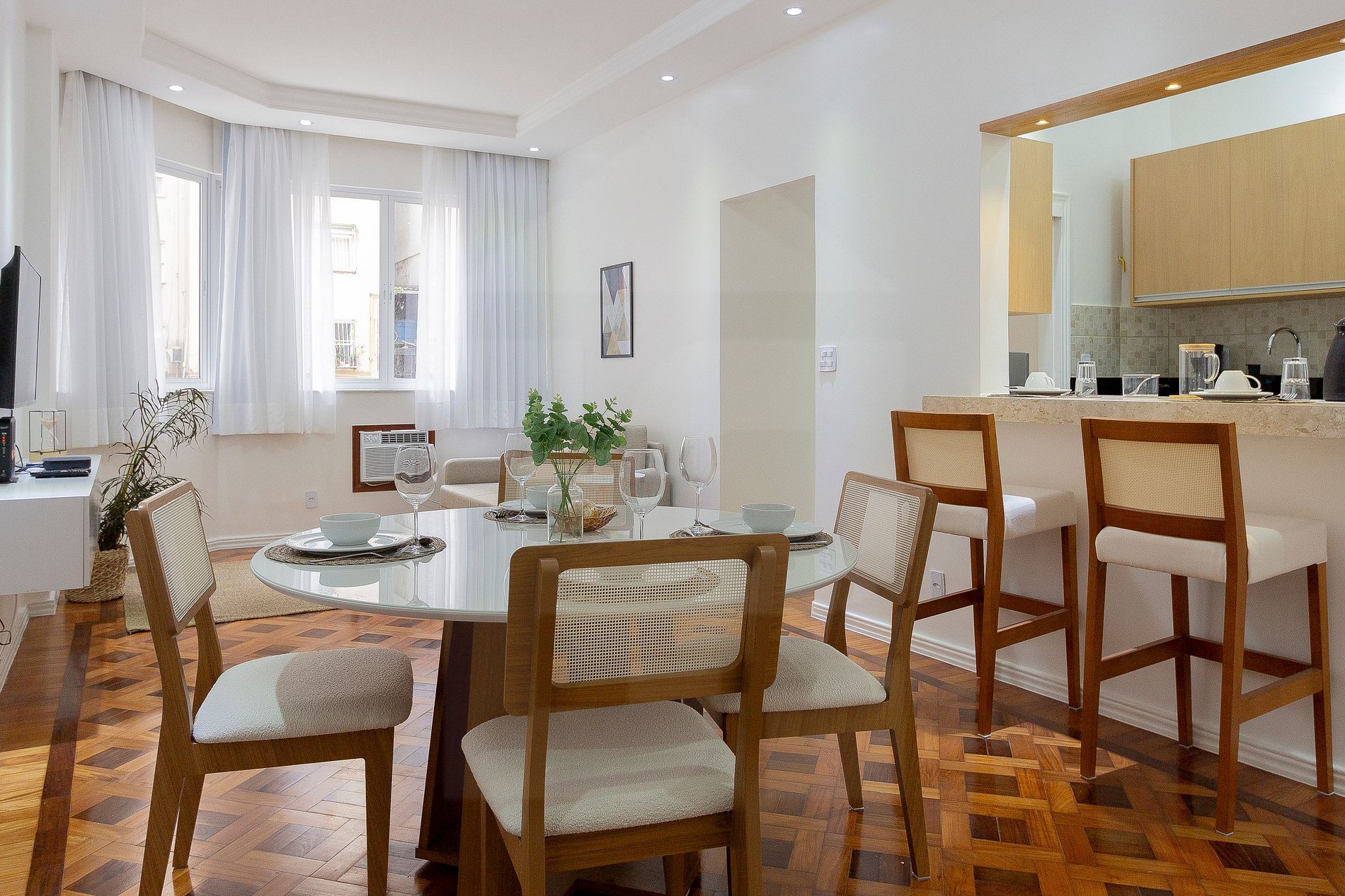 O apartamento possui ar-condicionado nos ambientes, garantindo conforto durante toda a estadia.