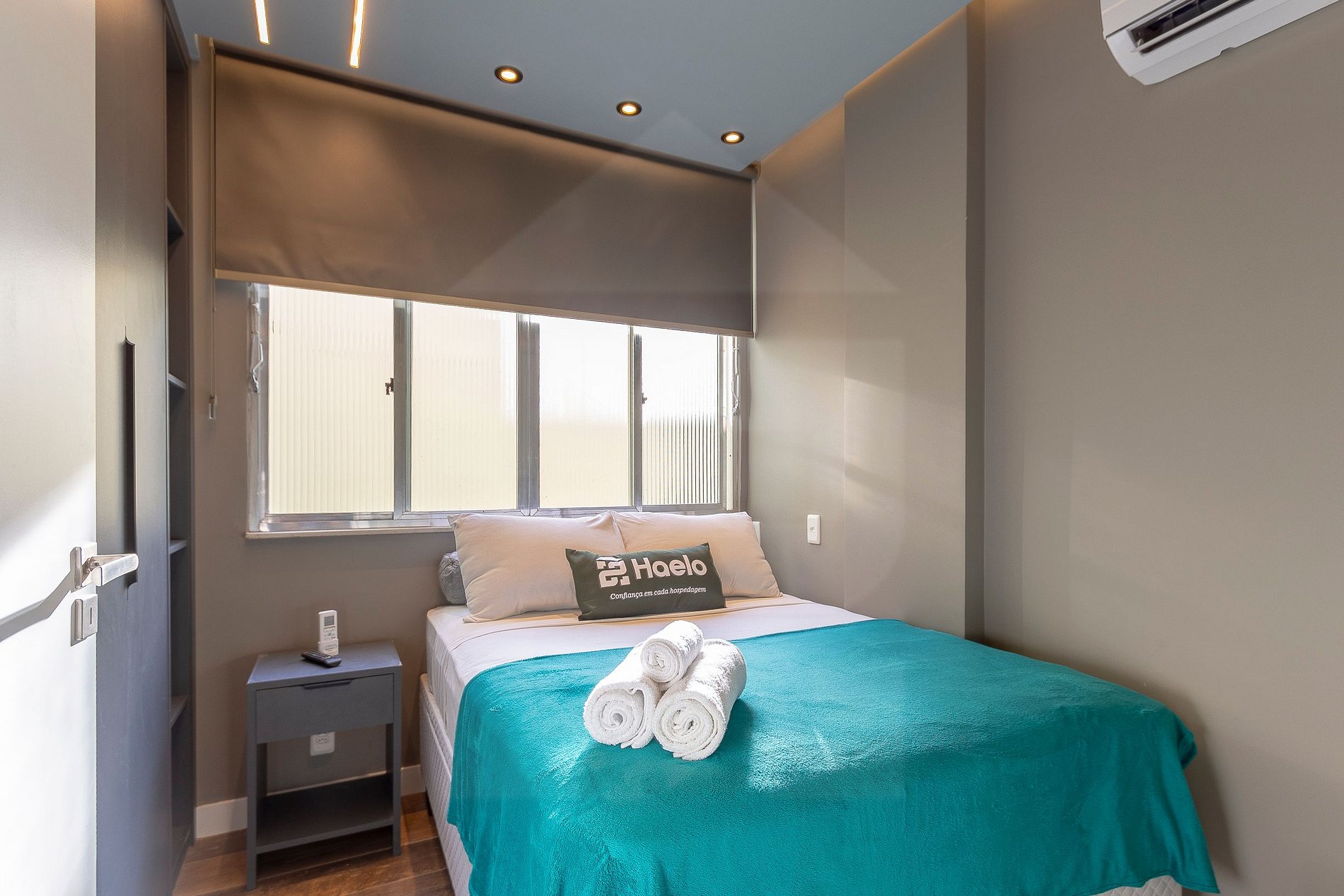 Apartamento aconchegante e completo na Rua Saint Roman, entre Copacabana e Ipanema. 1 quarto com cama de casal, Smart TV e armário.