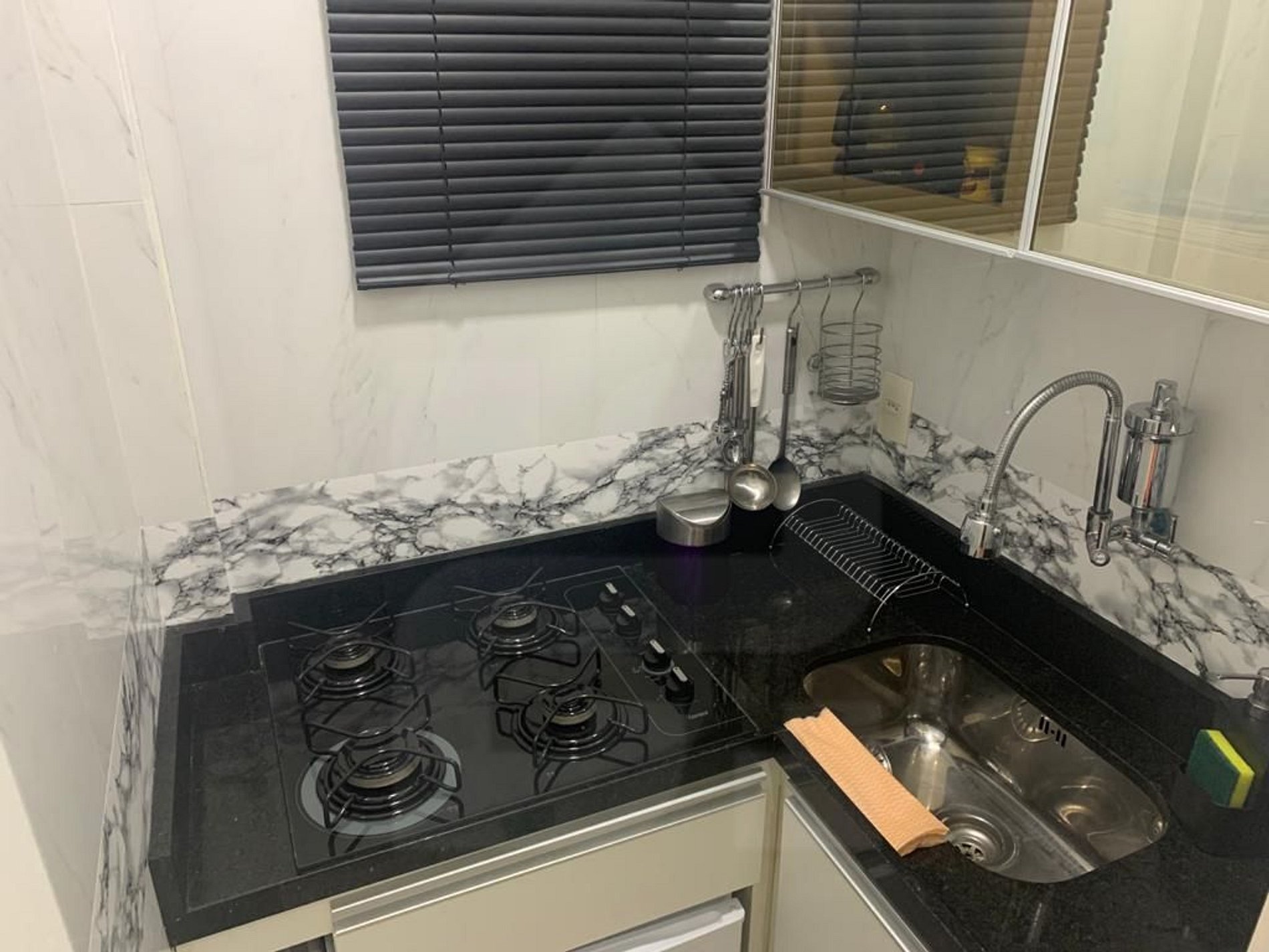 Cozinha - Completamente equipada, contando fogão, microondas, lava-louça, geladeira, cafeteira, sanduicheira, liquidificador além de utensílios.