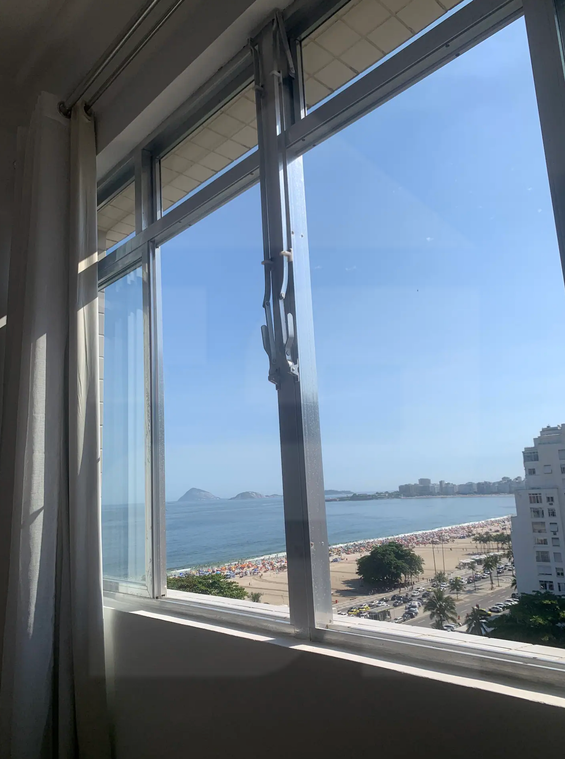 Enjoy stunning ocean views from this cozy apartment in Copacabana. Features 1 double bed, 2 singles, air conditioning, Wi-Fi, Smart TV, fully equipped kitchen, and a full bathroom.