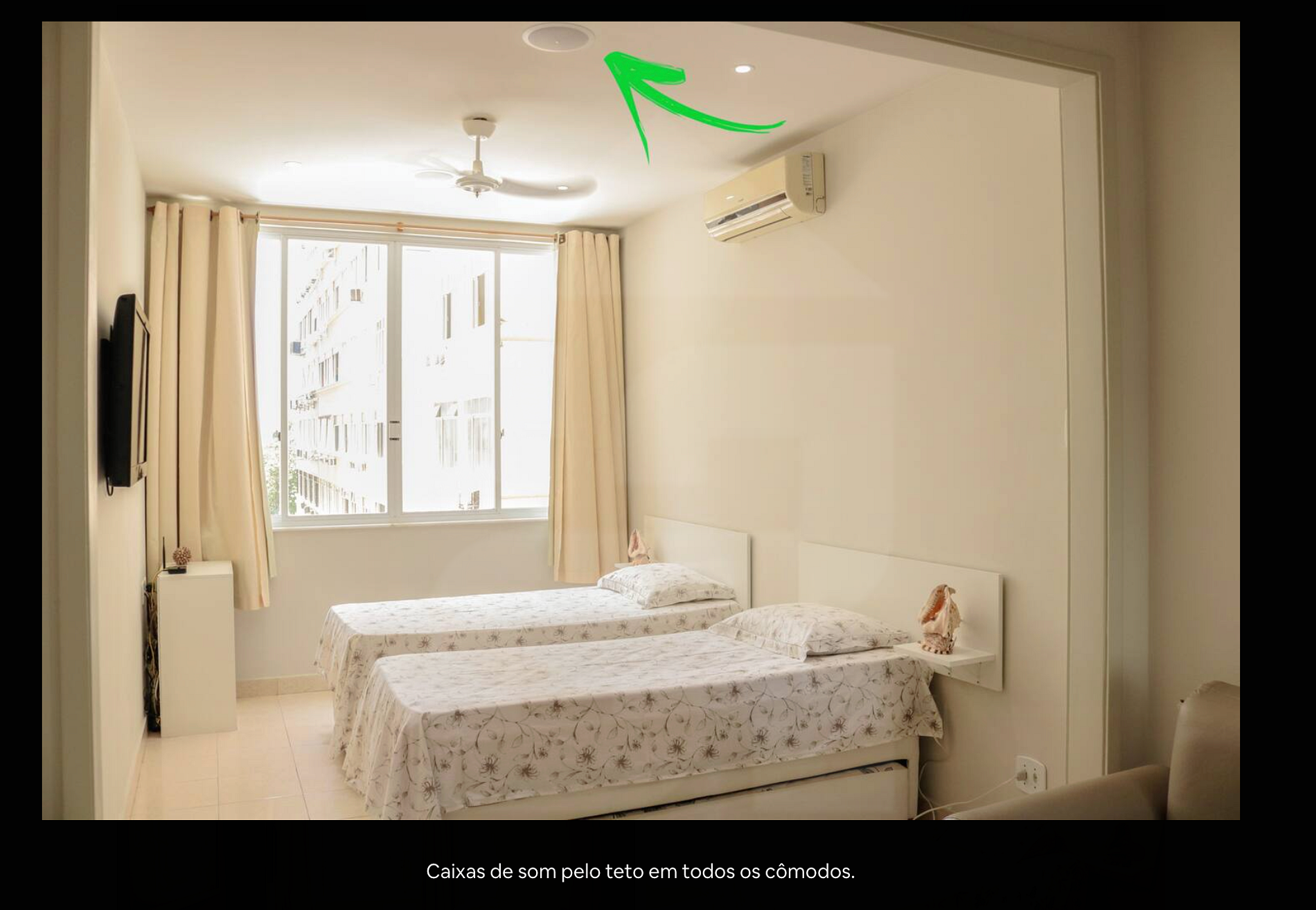 Ótima localização, pertíssimo da praia e possui um sistema de som ambiente!