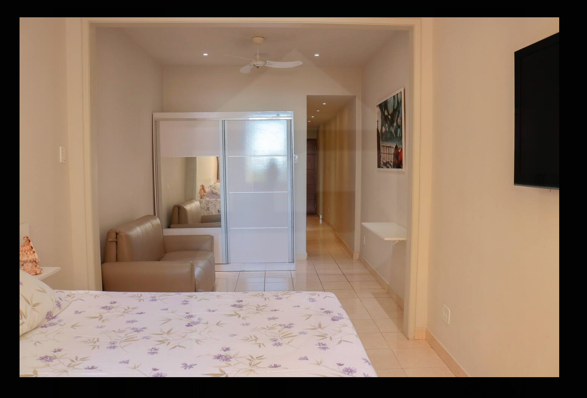 Studio with a stunning view of Copacabana’s beautiful sea and wireless sound system in all rooms. Clean, spacious.