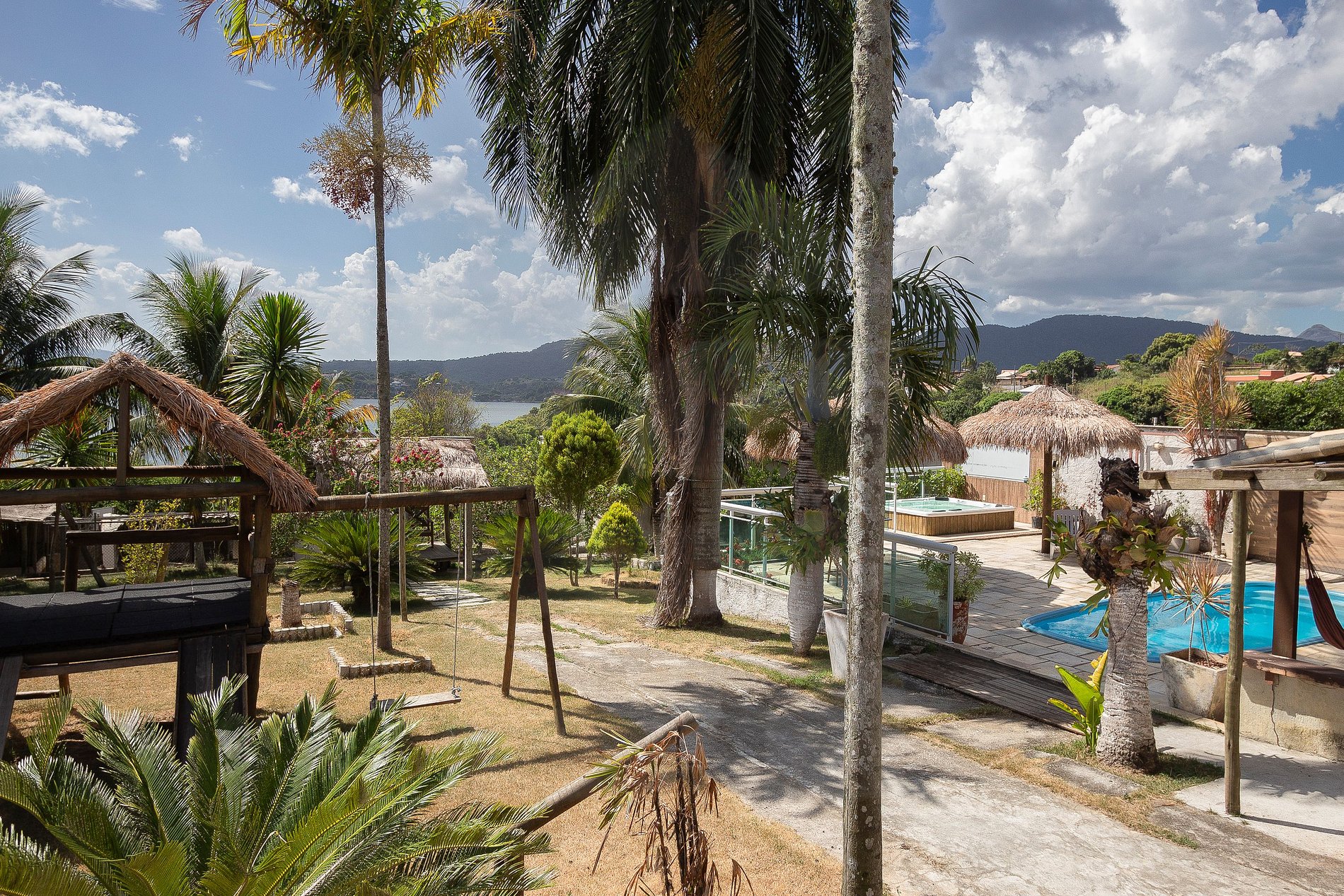 Full property in Maricá with a spectacular lake view, perfect for families and groups. Features 4 bedrooms (3 Canadian suites), game room, kids area, and gourmet space with barbecue, wood oven, and stove. Outdoor area includes pool and SPA with hot tub (extra fee). Spacious and comfortable, ideal for leisure, events, and unforgettable moments surrounded by nature.