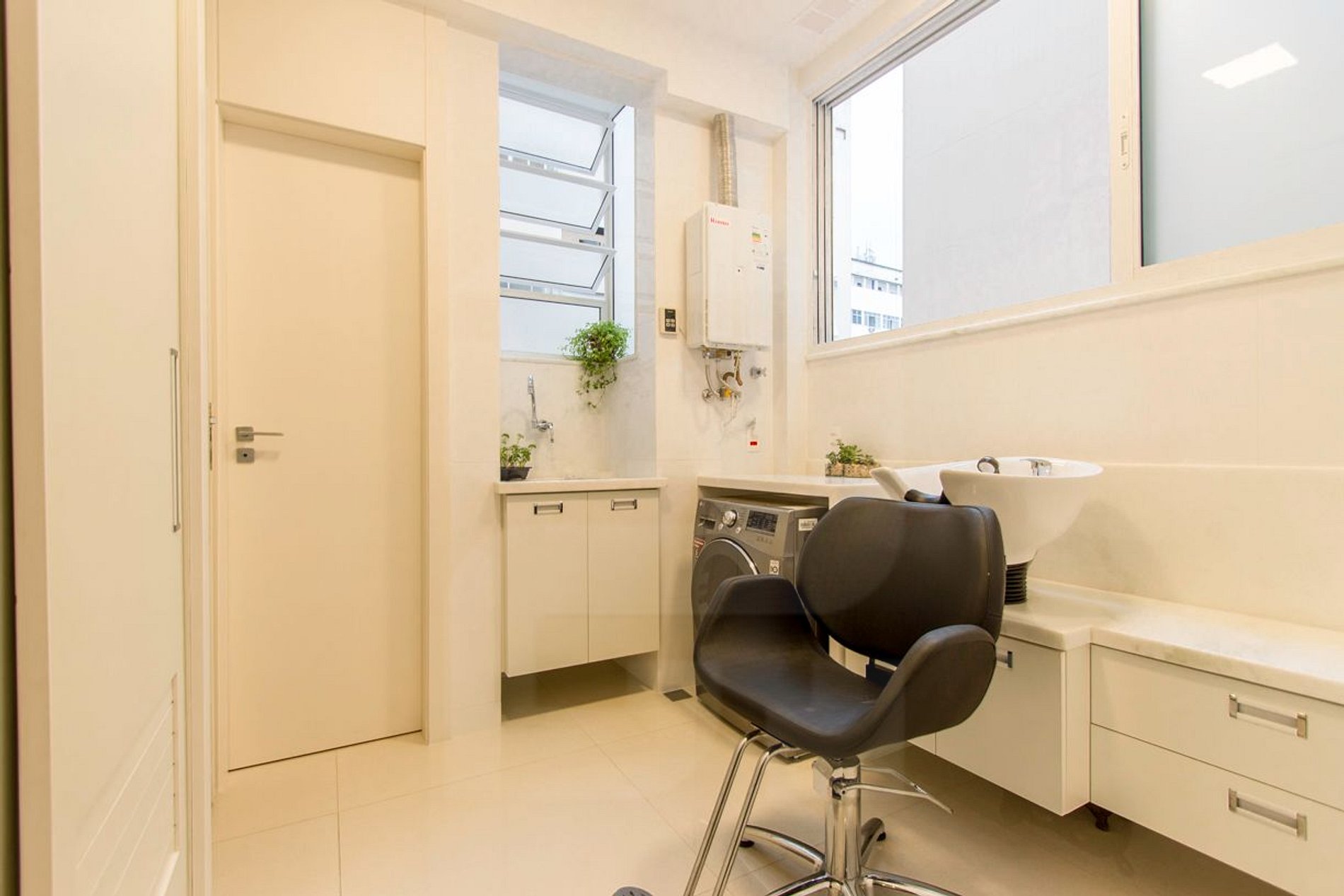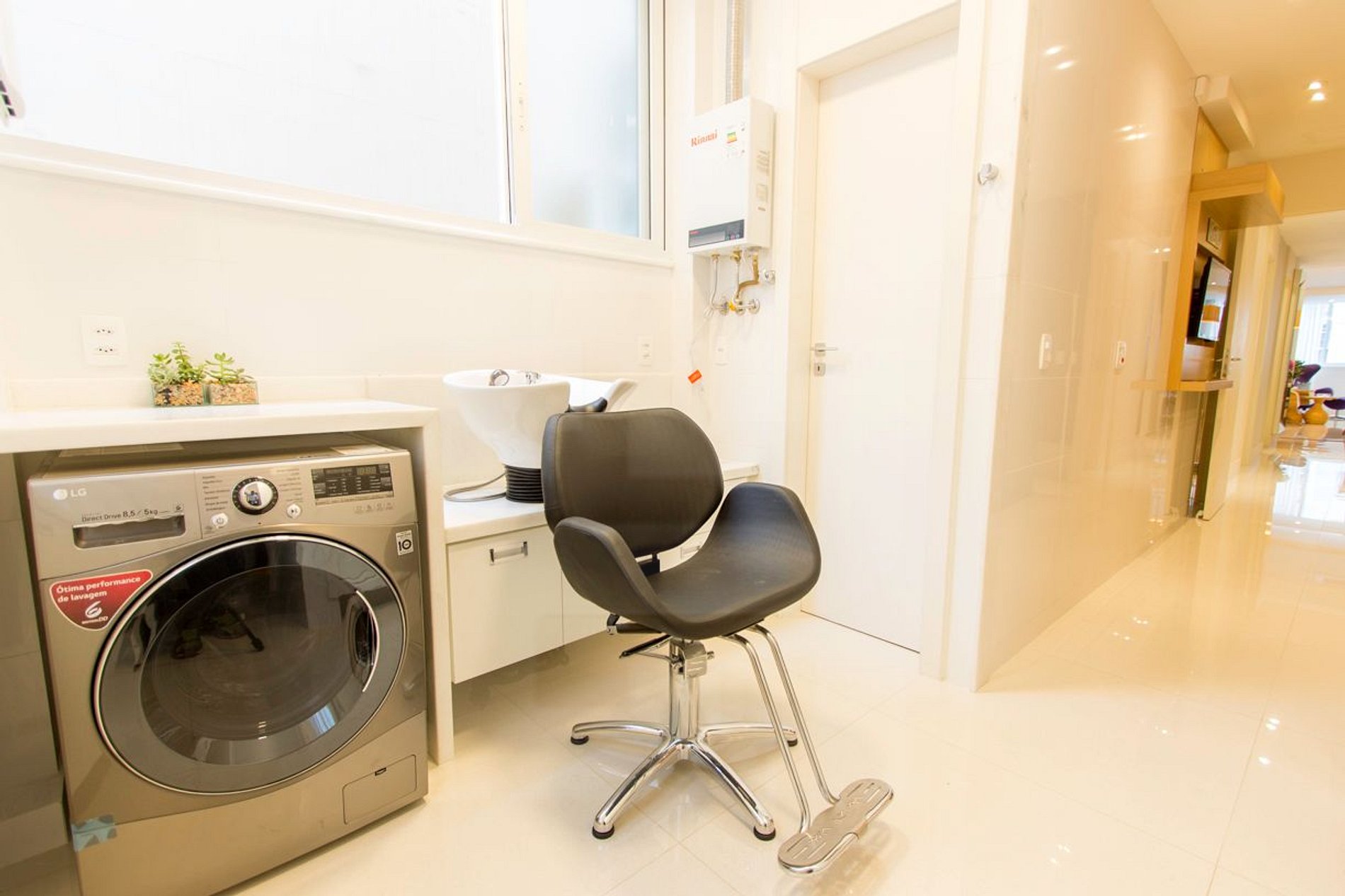 Área de serviço: Lavadora e Secadora, espaço Beauty e banheiro auxiliar