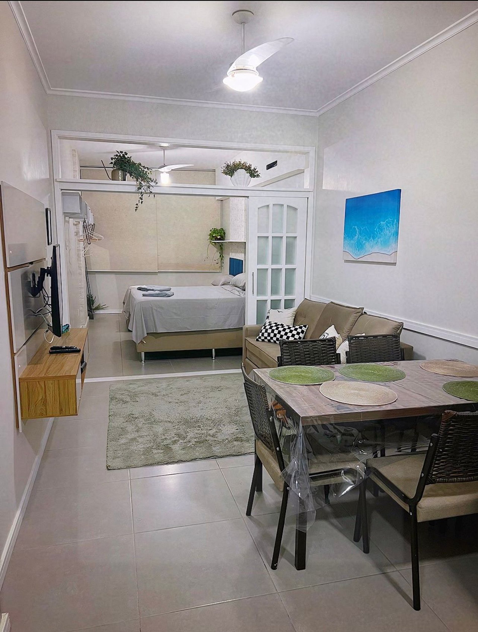 Amplio estudio interior, tranquilo y acogedor, a pocos pasos de la Playa de Copacabana. Acomoda hasta 4 personas y cuenta con aire acondicionado, Smart TV, Wi-Fi y cocina totalmente equipada. Ubicado en edificio tradicional con portería 24 horas y cerradura electrónica, junto a la estación de metro Cardeal Arcoverde. Cerca de comercios, bancos, farmacias, vans oficiales al Cristo Redentor, Copacabana Palace y Shopping Rio Sul.