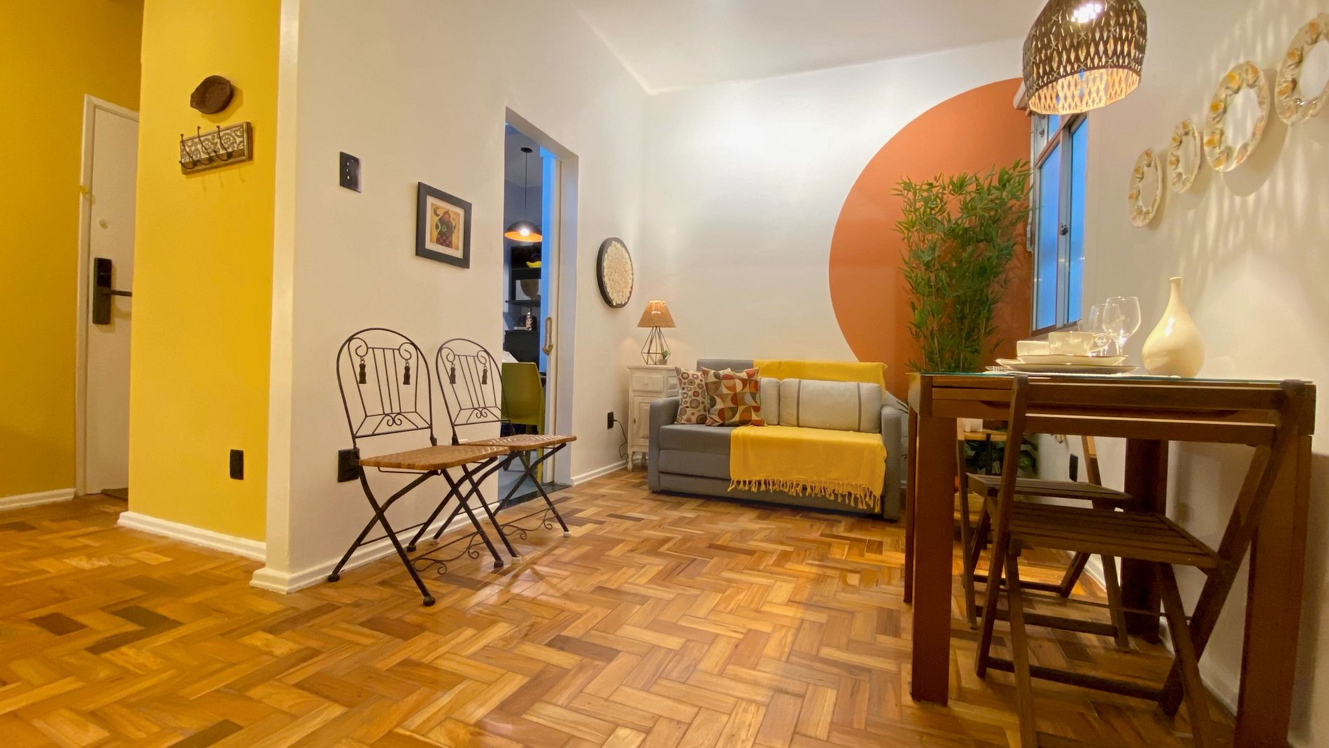 Apartamento silencioso y acogedor, ubicado en la parte trasera, a solo 100 m de la Playa de Copacabana y 500 m de la Playa de Ipanema. Situado en un edificio residencial con recepción y monitoreo 24h. Ideal para parejas y familias de hasta 4 personas, con 1 dormitorio con cama doble y sofá cama en la sala. Cuenta con espacio de trabajo, Smart TV, Wi-Fi, cocina completa y decoración alegre con colores y detalles que brindan encanto y confort.