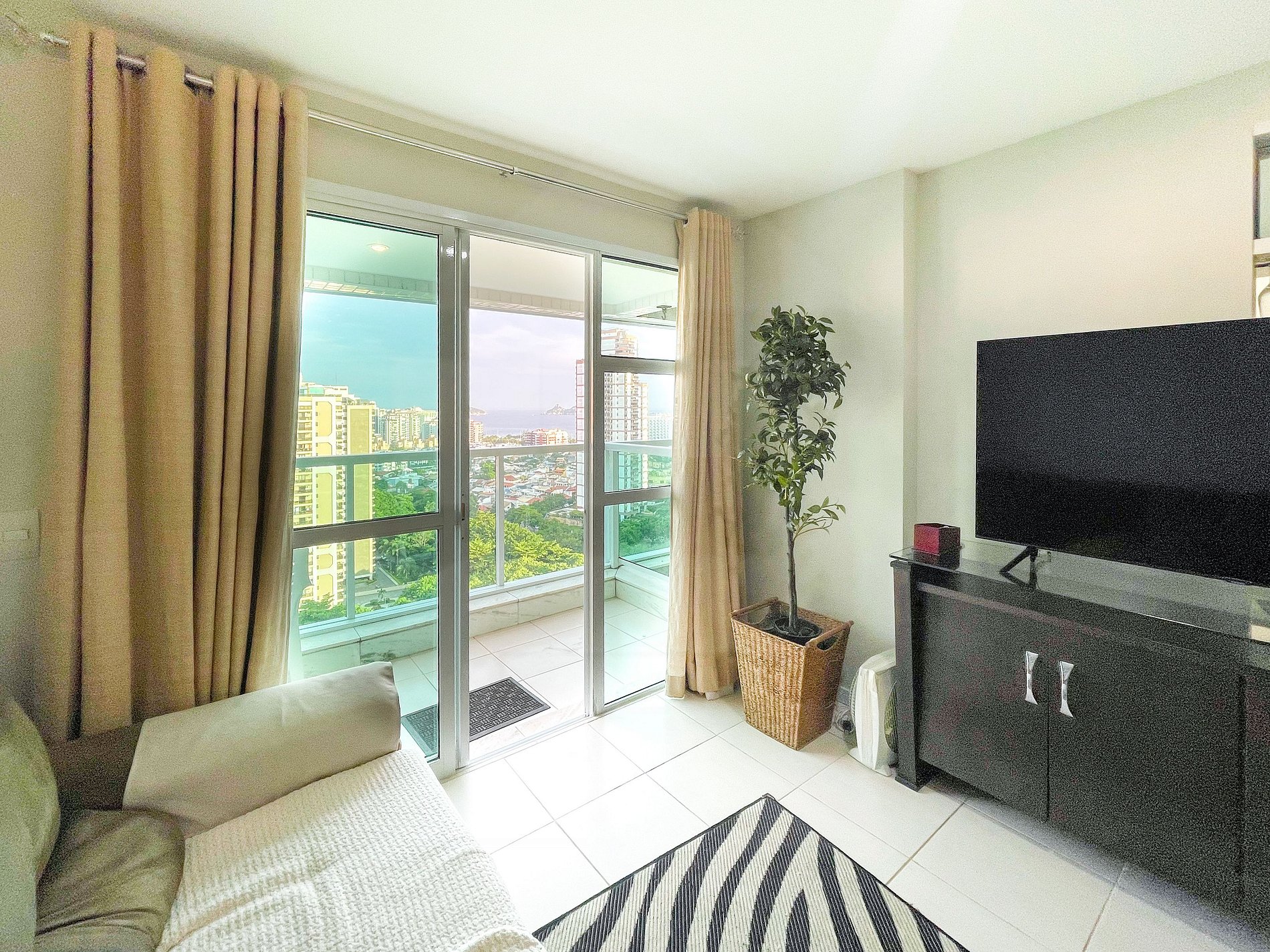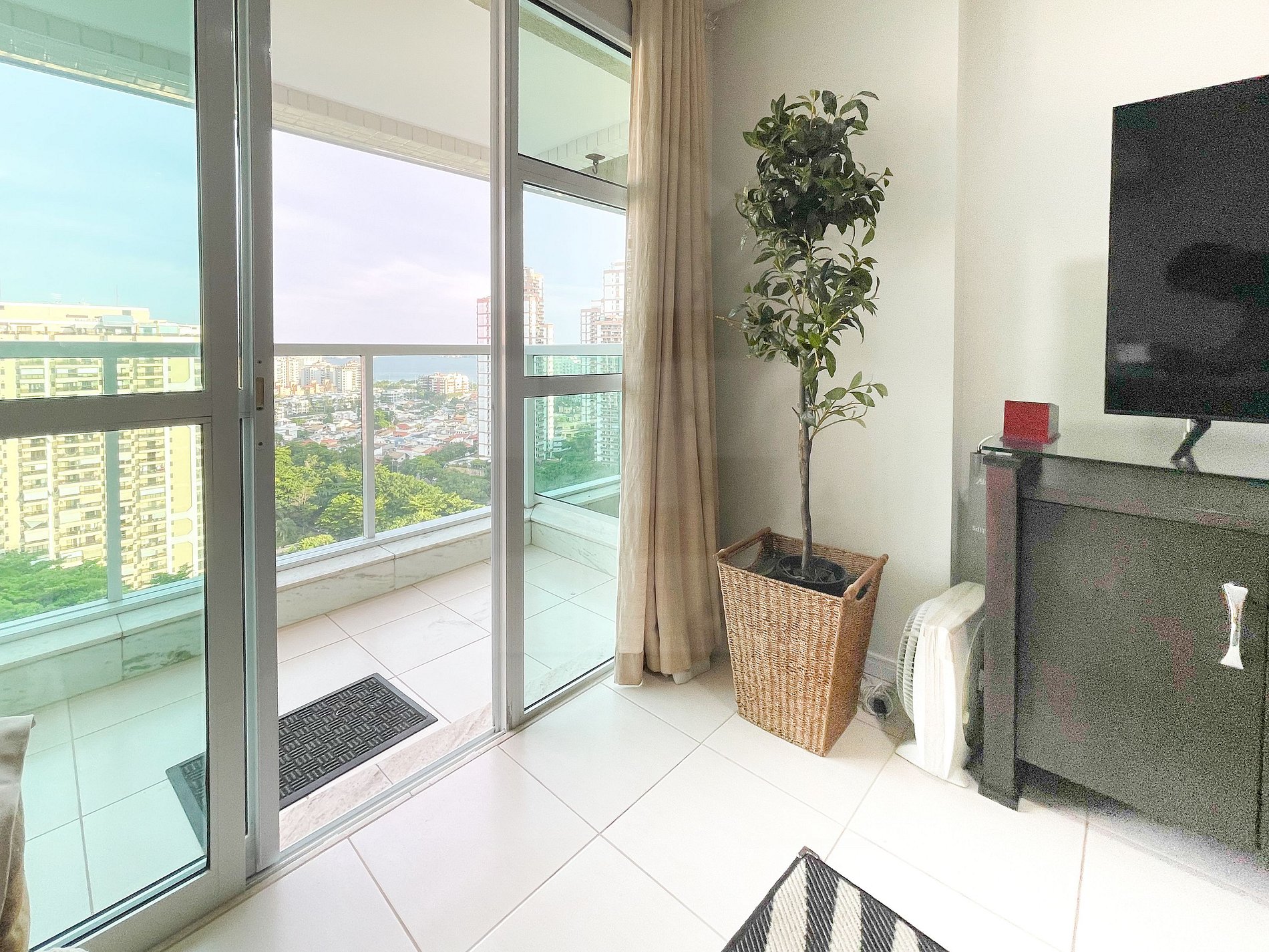 Balcón - Amplio con vista panorámica a la playa de Barra da Tijuca.