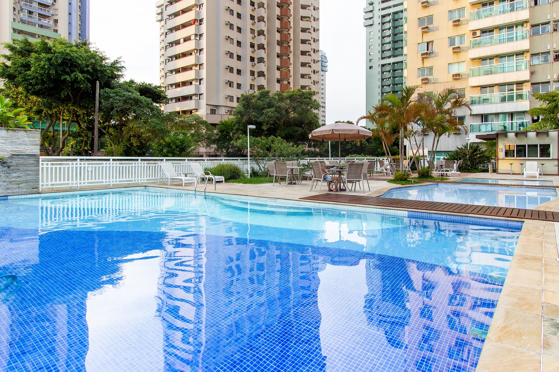 Aproveche la piscina, sauna, gimnasio, hidromasaje y área de compras segura las 24 horas.