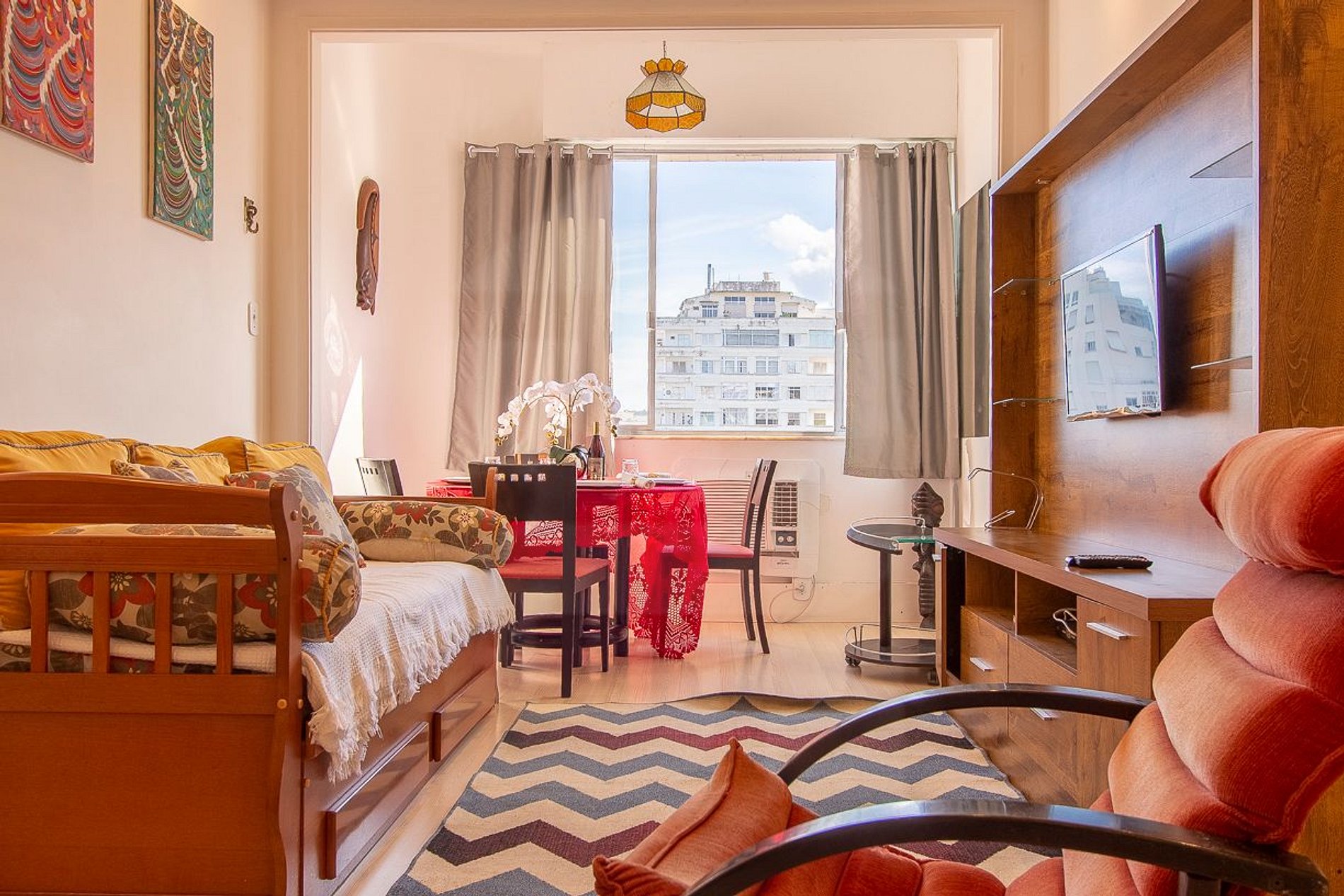 Copacabana - FRENTE AL MAR, SALÓN Y DORMITORIO 40M² - TRANQUILO PARA HASTA 6 PERSONAS Muy bien situado, salón, dormitorio, cocina y baño. Piso 10 al frente, tranquilo, amueblado, TV por cable (NET) e internet Wi-Fi de banda ancha. Ubicado en un edificio residencial y al lado de la Plaza Lido. lugar donde se encuentran las camionetas oficiales para el Cristo Redentor, cerca de todo, hay todos los comercios alrededor, ubicado entre Hortifrúti y una panadería, cerca de supermercado 24 horas, lavandería, farmacias, restaurantes de kilo y a la carta, bancos, proporcionando comodidad y todo tipo de ocio. Cerca del metro (estación Cardeal Arcoverde) y paradas de autobús a todos los barrios de Río. Habitación bien decorada dividida en dos ambientes con cama de matrimonio, sofá cama, TV de 32 pulgadas, mesa, sillas, ventilador de techo y otros elementos. Dormitorio, cama doble, armario, ventilador. Cocina completa con refrigerador, estufa. Dispone de vajilla, sartén y demás utensilios de cocina. Disponemos de plancha y tabla de planchar. Baño con ducha blindex y calefacción de gas. Proporcionamos ropa de cama y baño. *Fotos ilustrativas, bebida alcohólica bajo pedido* ¡Sea bienvenido!