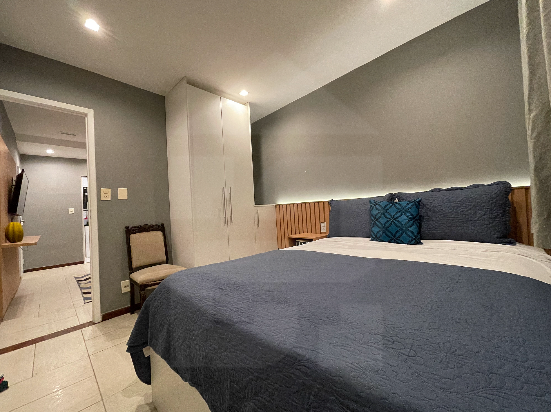 Dormitorio - Cuenta con una cama doble, un armario espacioso, aire acondicionado y un balcón para momentos de relajación.