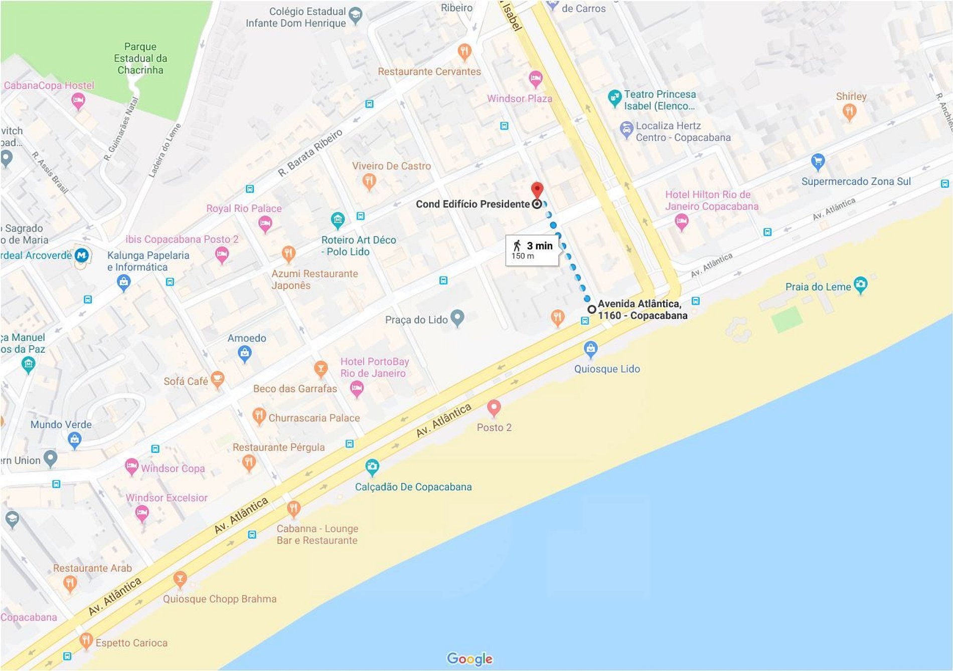 | Playa | Praia de Copacabana | 150 m |