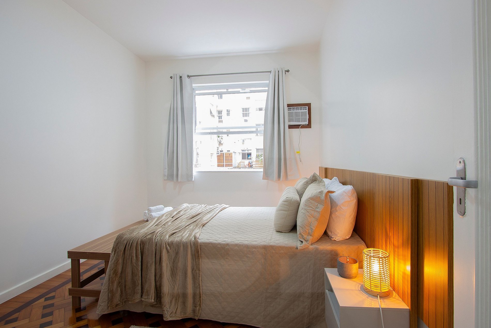 "¡Descubre tu refugio carioca en este apartamento totalmente renovado en Copacabana! Con dos amplias habitaciones, aloja cómodamente hasta 4 personas.