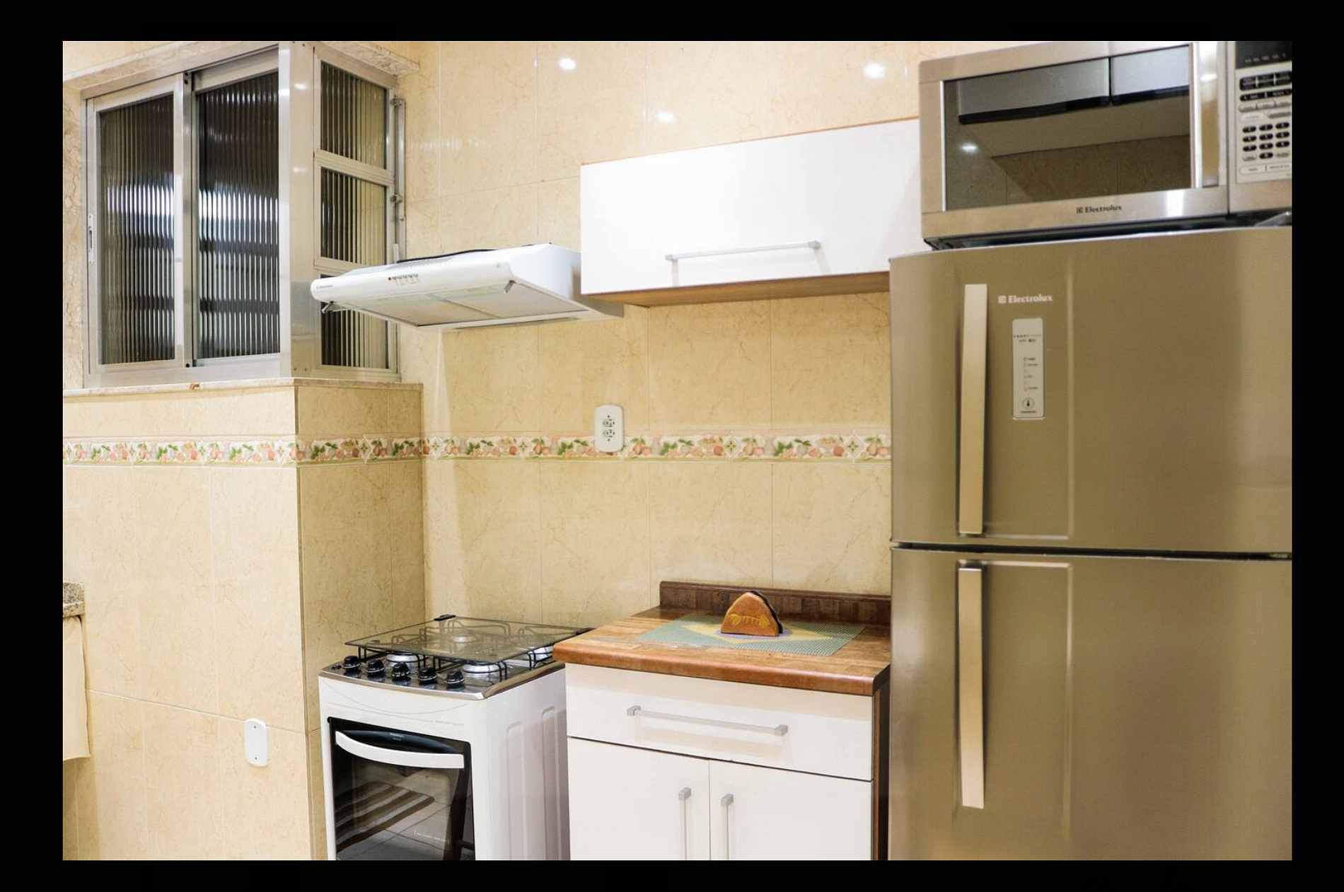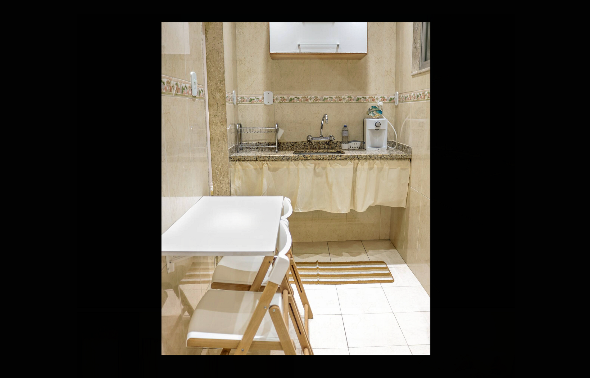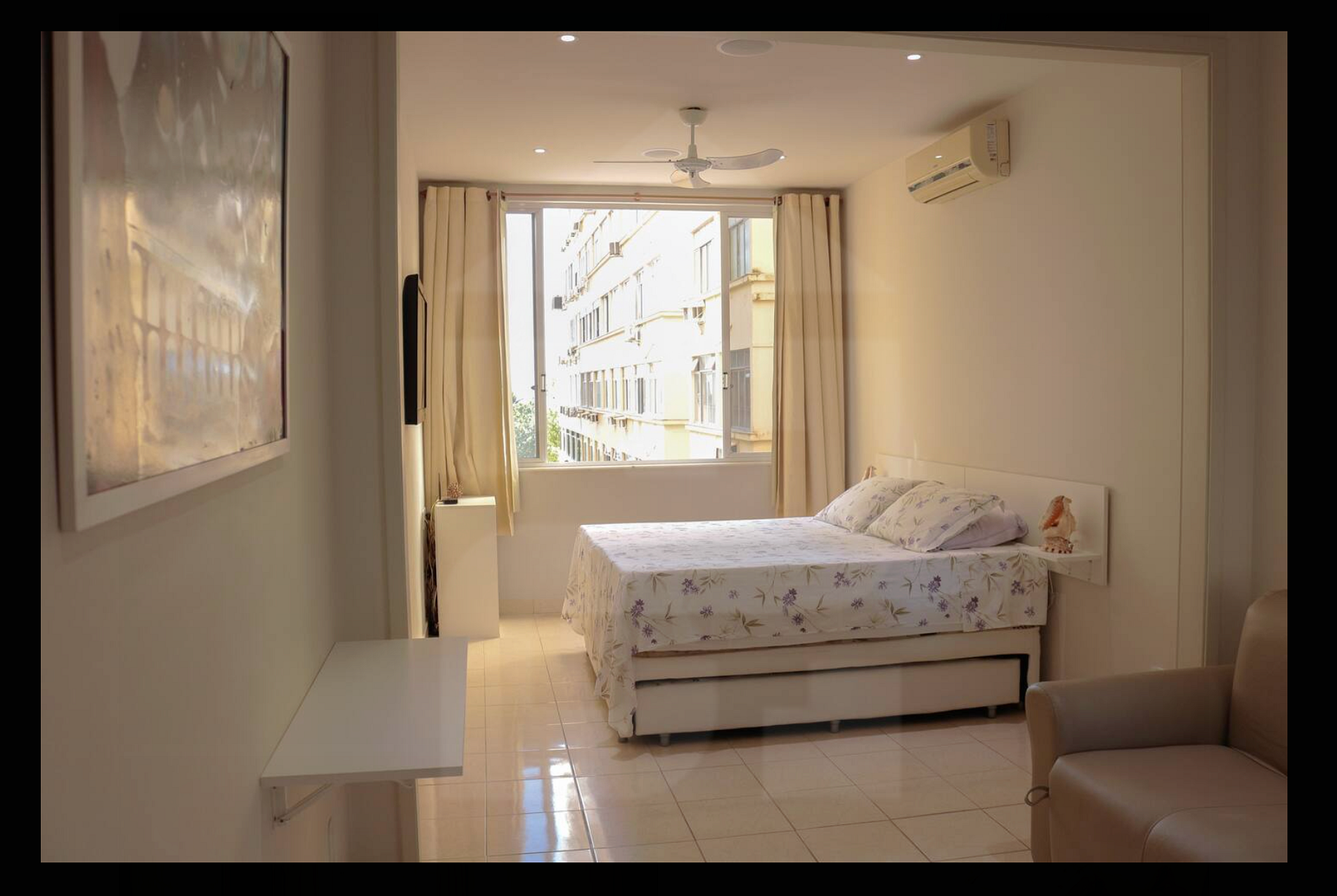 Studio com vista pro belíssimo mar de Copacabana e sonorização wireless em todos os cômodos. Ambiente clean, amplo e confortável. Possui tv a cabo, ar-condicionado e cozinha completa com eletrodomésticos de excelente qualidade.