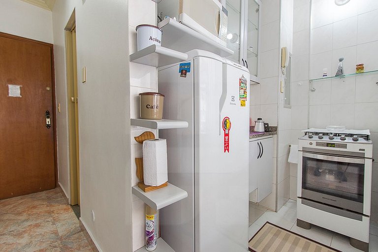 apartamento muito bem localizado e bem equipado, conforme anúncio. fácil comunicacao com o anfitrião. predio com portaria 24h e todos bem solicitos. estadia perfeita.