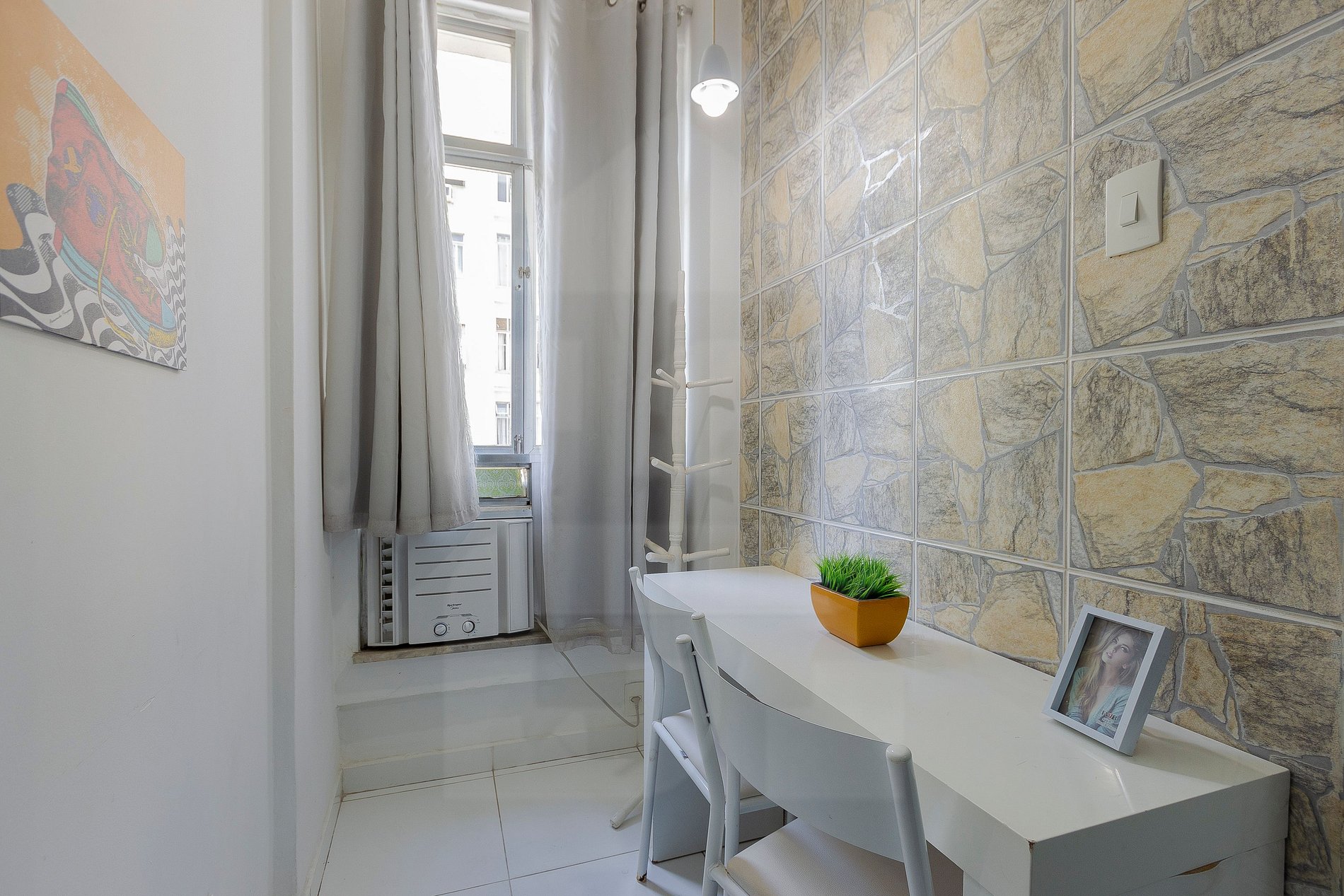 Este confortável apartamento é um estúdio completo, localizado a apenas 3 minutos da famosa praia de Copacabana. Possui portaria e vigilância 24 horas, ideal para acomodar até 3 pessoas.