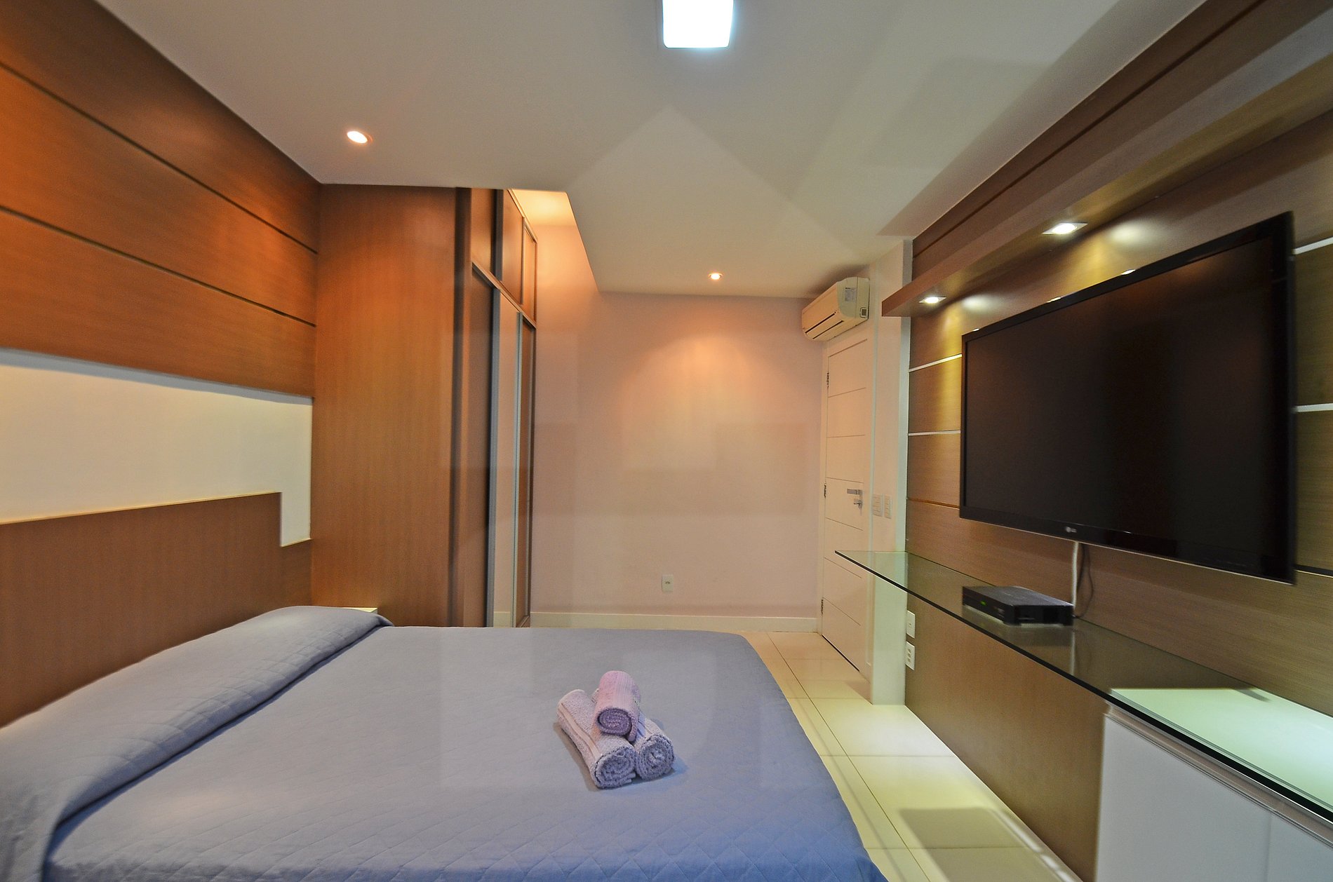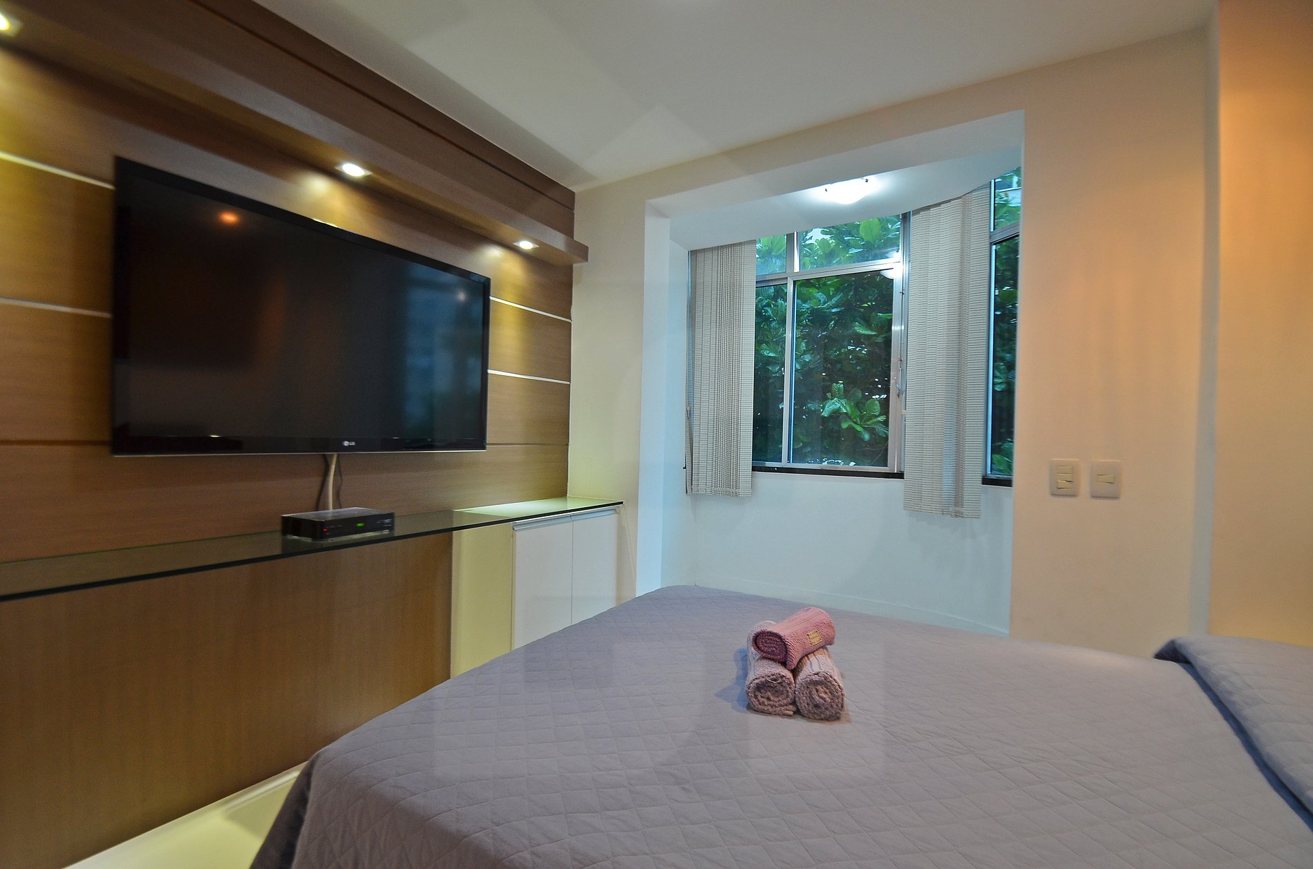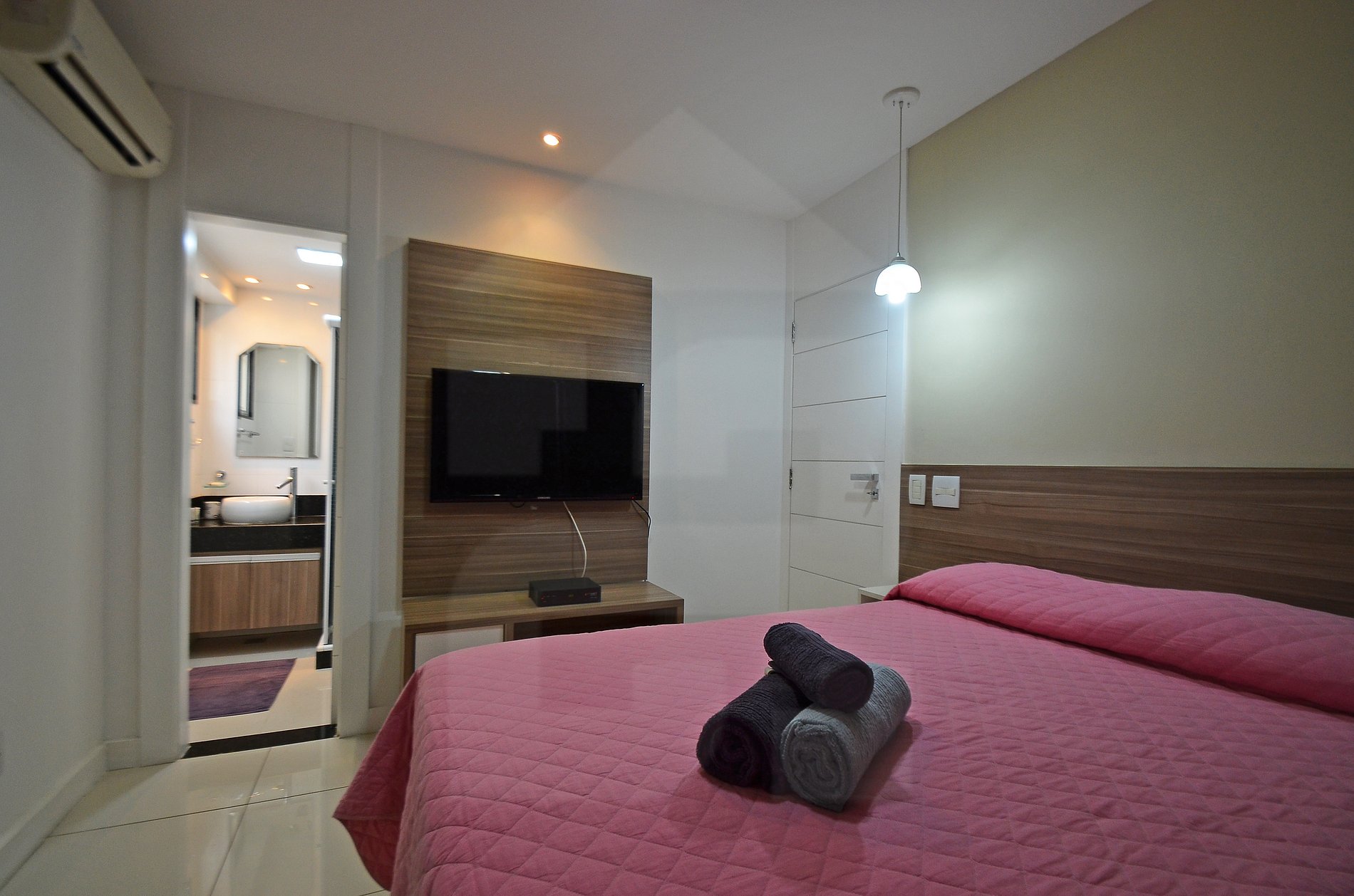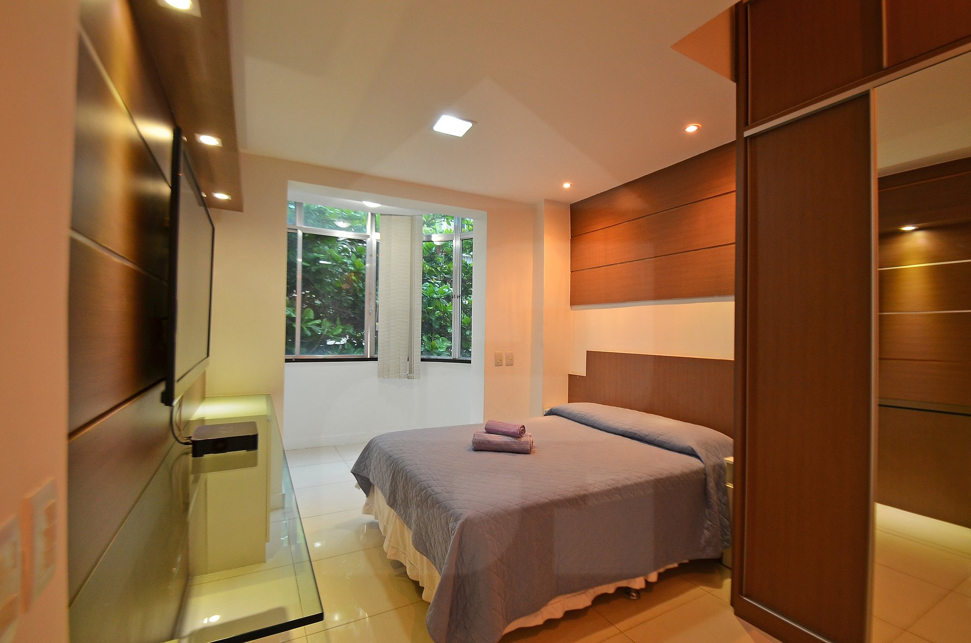 Encantador apartamento luxuoso e moderno, a poucos passos da praia de Copacabana. Com 3 quartos, todos com cama de casal, ar-condicionado, TV LCD e guarda-roupas.